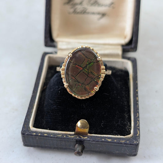 Vintage 10k Yellow Gold Ammolite Triplet Ring