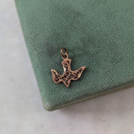 Vintage 10k Yellow Gold Filigree Bird Dove Pendant Charm