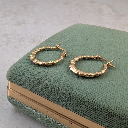 Estate 14k Yellow Gold Small Bamboo Hoops