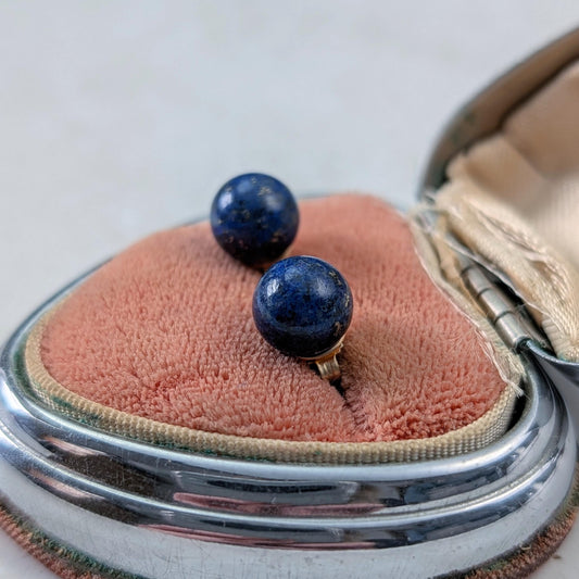 Estate 14k Yellow Gold Lapis Lazuli Ball Stud Earrings