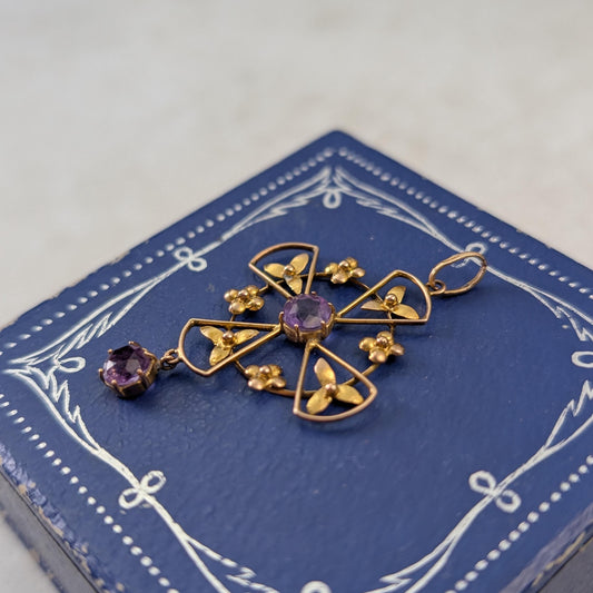 Antique Edwardian 10k Yellow Gold Amethyst Lavalier Pendant