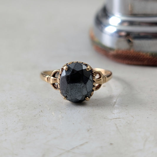 Vintage 10k Yellow Gold Oval Hematite Ring *Has Wear
