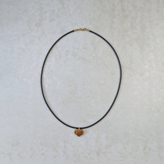 Estate 9k Yellow Gold Puffy Heart Rubber Cord Necklace