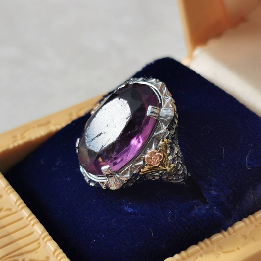 Art Deco 10k White Gold Filigree & Paste Amethyst Cocktail Ring