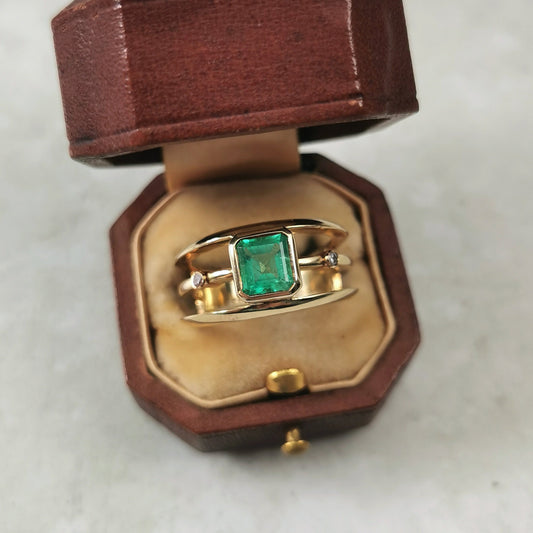 Estate Custom 18k Yellow Gold 0.96ct Emerald and Diamond Ring