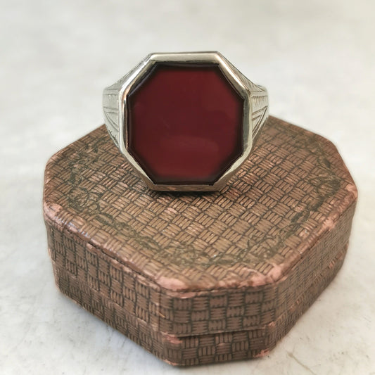 Art Deco Ostby Barton Gent's Signet Ring - 10k White Gold & Carnelian