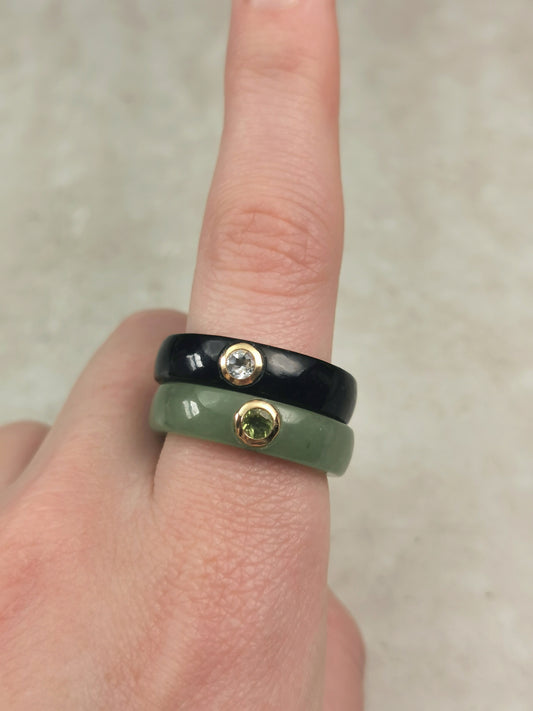 Pair of Estate 14k Yellow Gold Jadeite and Gemstone Stacking Bands