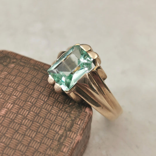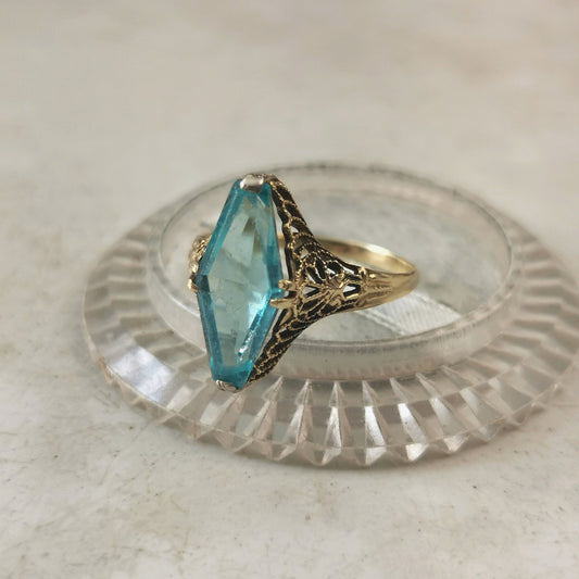Art Deco Filigree 14k Yellow Gold Blue Paste Ring