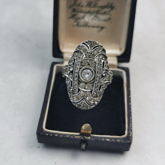 Birks Art Deco Sterling Silver & Paste Large Statement Rhinestone Ring