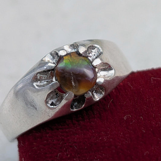 Custom Vintage Sterling Silver Belcher Set Fire Agate Ring