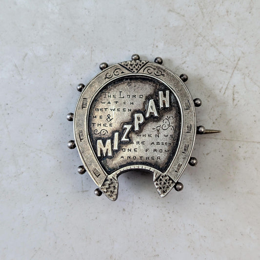Set of Victorian Sterling Silver Brooches - Mizpah & Lucky Horseshoe Sweetheart Brooches
