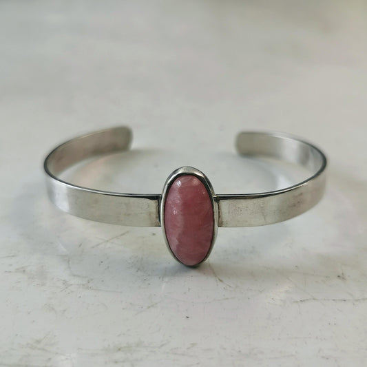 Vintage Sterling Silver Rhodochrosite Set - Ring and Cuff Bracelet