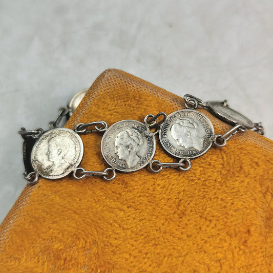 Vintage Queen Wilhelmina Silver Coin Bracelet