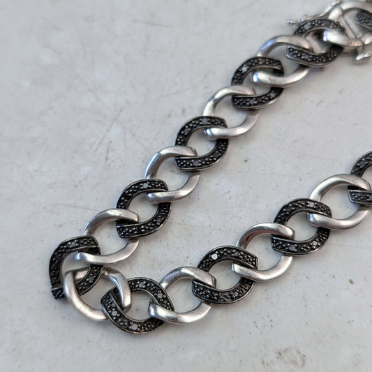Estate Sterling Silver and Black Diamond Curb Link Bracelet