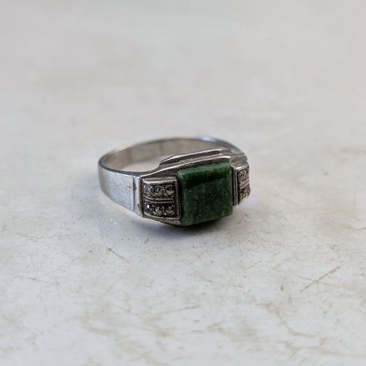 Art Deco Sterling Silver Jade and Marcasite Ring