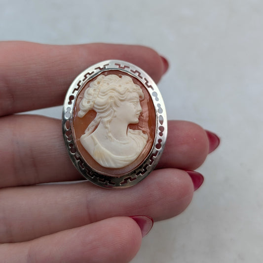 Estate Sterling Silver Cameo Brooch Pendant