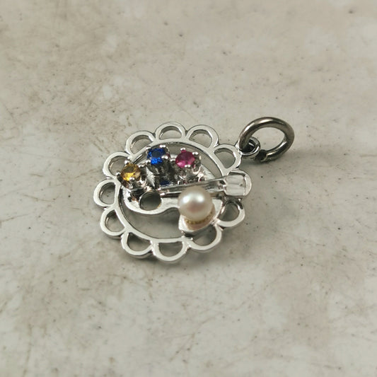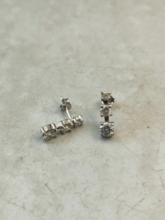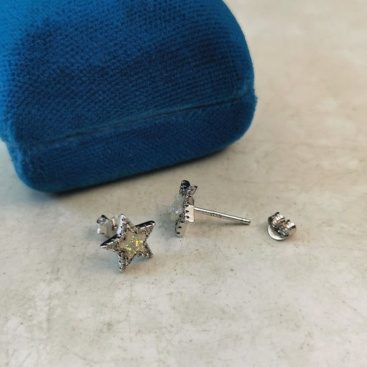 Estate Sterling Silver CZ & Faux Opal Star Stud Earrings