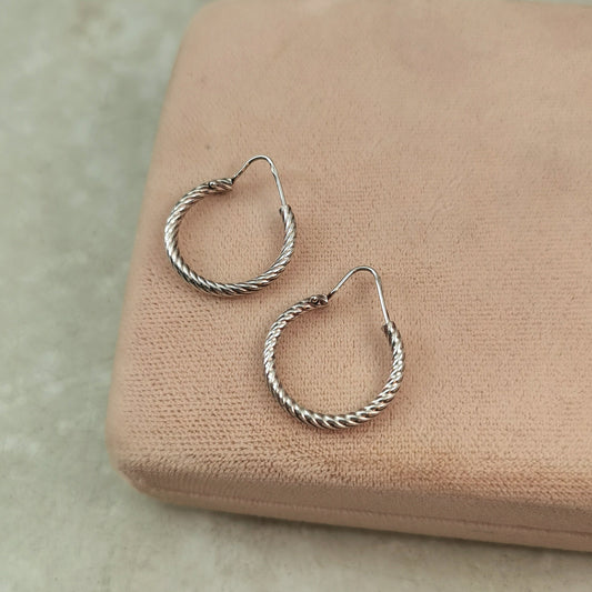 Vintage Sterling Silver Twisted Rope Tube Hoops