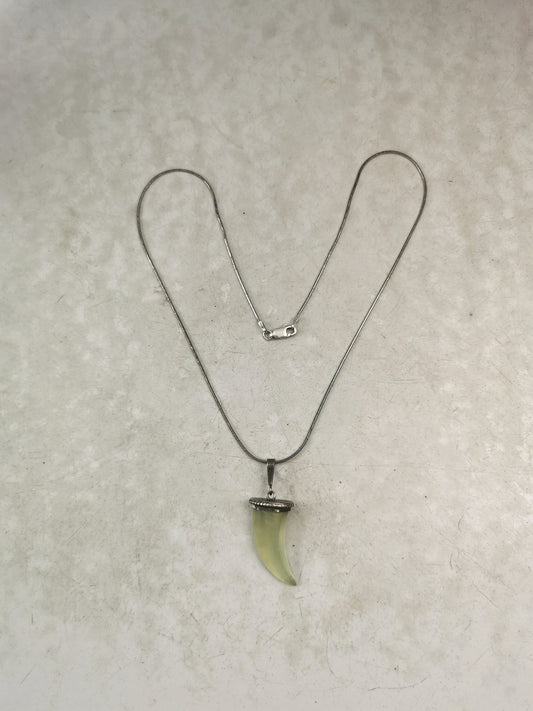 Vintage Sterling Silver & Green Soapstone Tooth Necklace