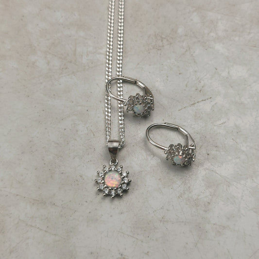 New Sterling Silver Created Opal and CZ Set - Lever Back Earrings and Pendant Necklace