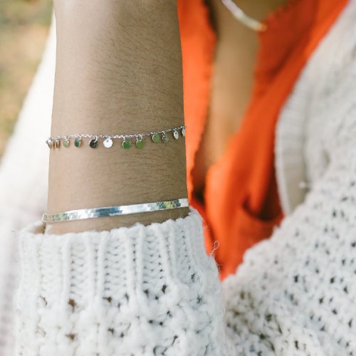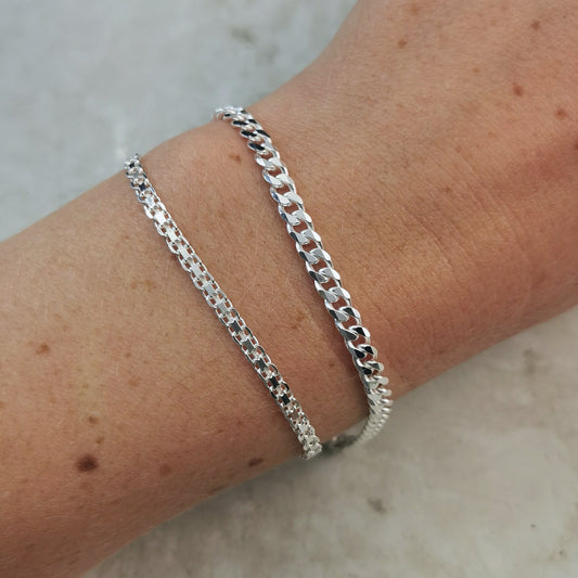 New Sterling Silver 3.5mm Herringbone Chain Bracelet - Silver & Gold