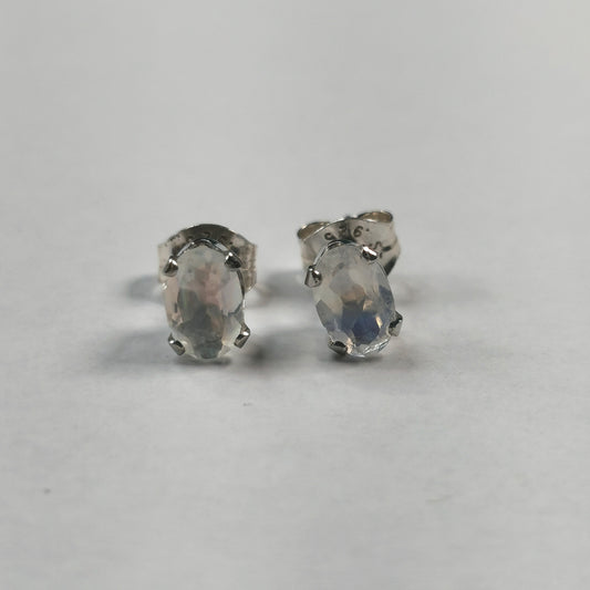 New Sterling Silver Colourless Labradorite Stud Earrings