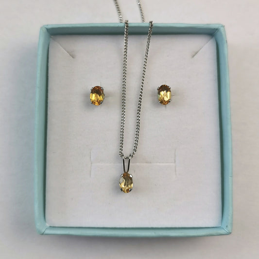 New Sterling Silver Citrine November Birthstone Set - Studs and Necklace