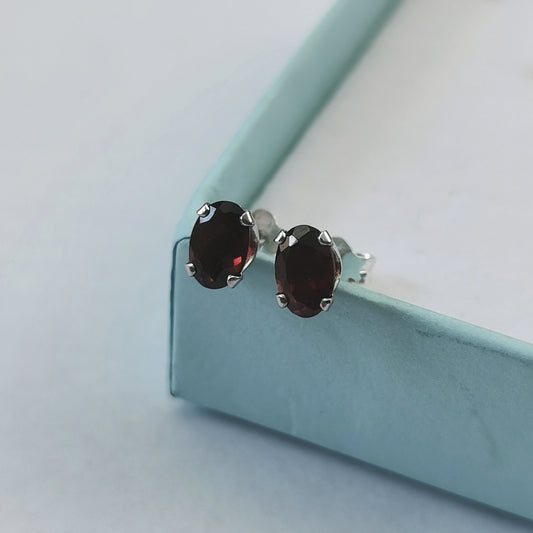 New Sterling Silver Garnet January Birthstone Set - Studs and Necklace
