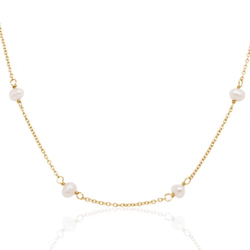 New Sterling Silver Gold Vermeil Dainty Pearl Station Chain