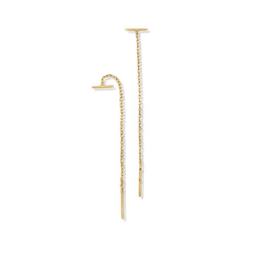 New Sterling Silver Bar Chain Threader Earrings - Silver & Gold