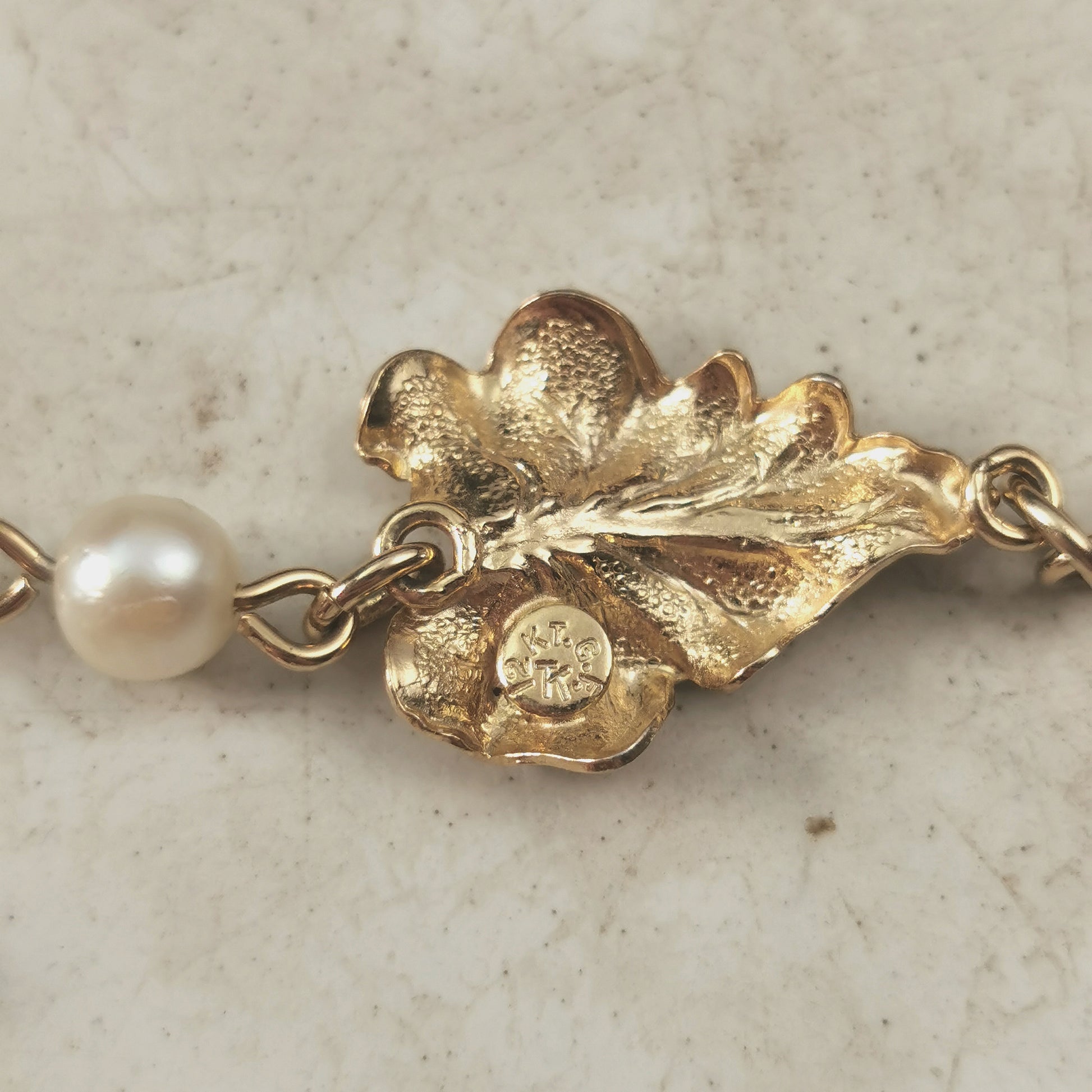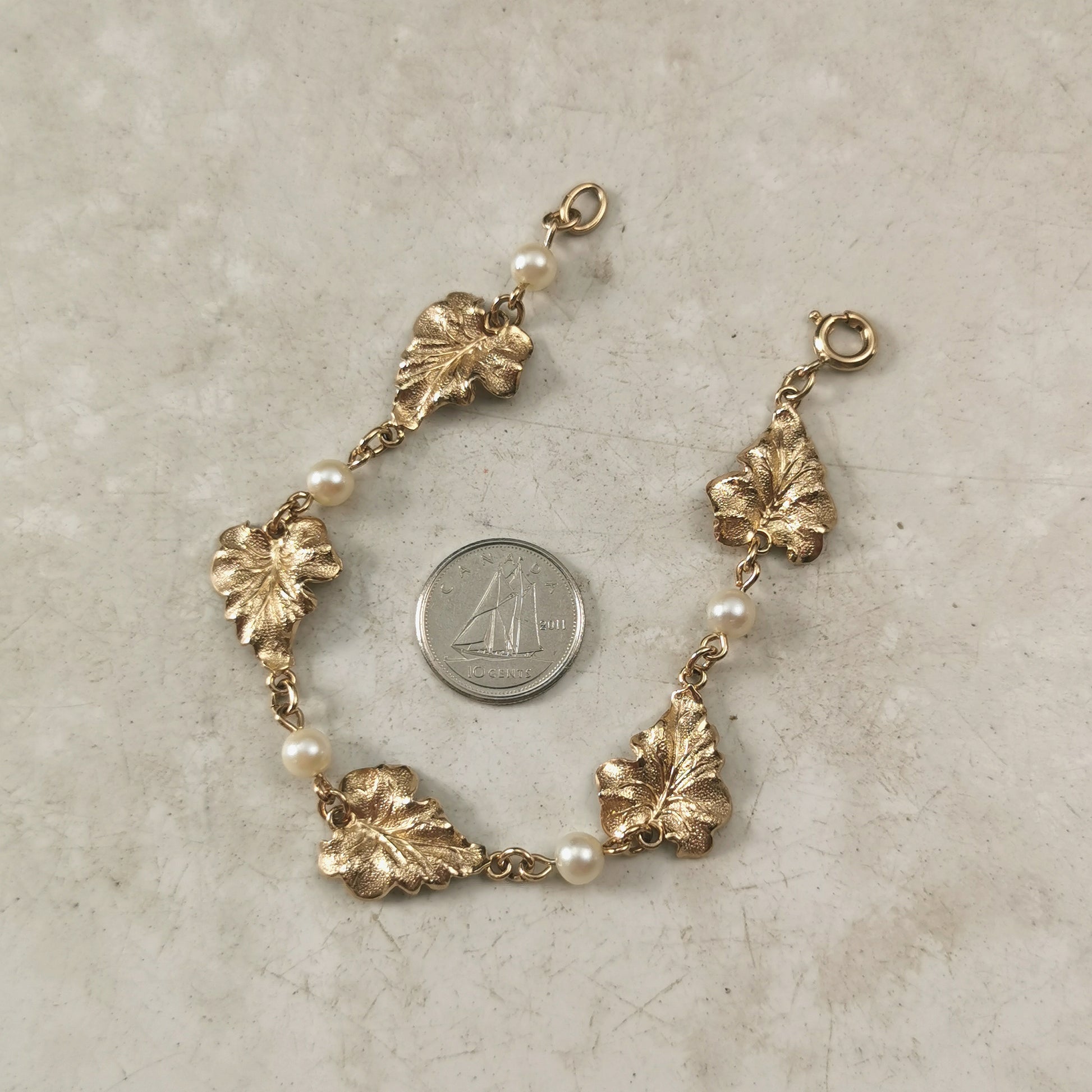 Vintage Gold Filled and Cultured Pearl Leaf Bracelet