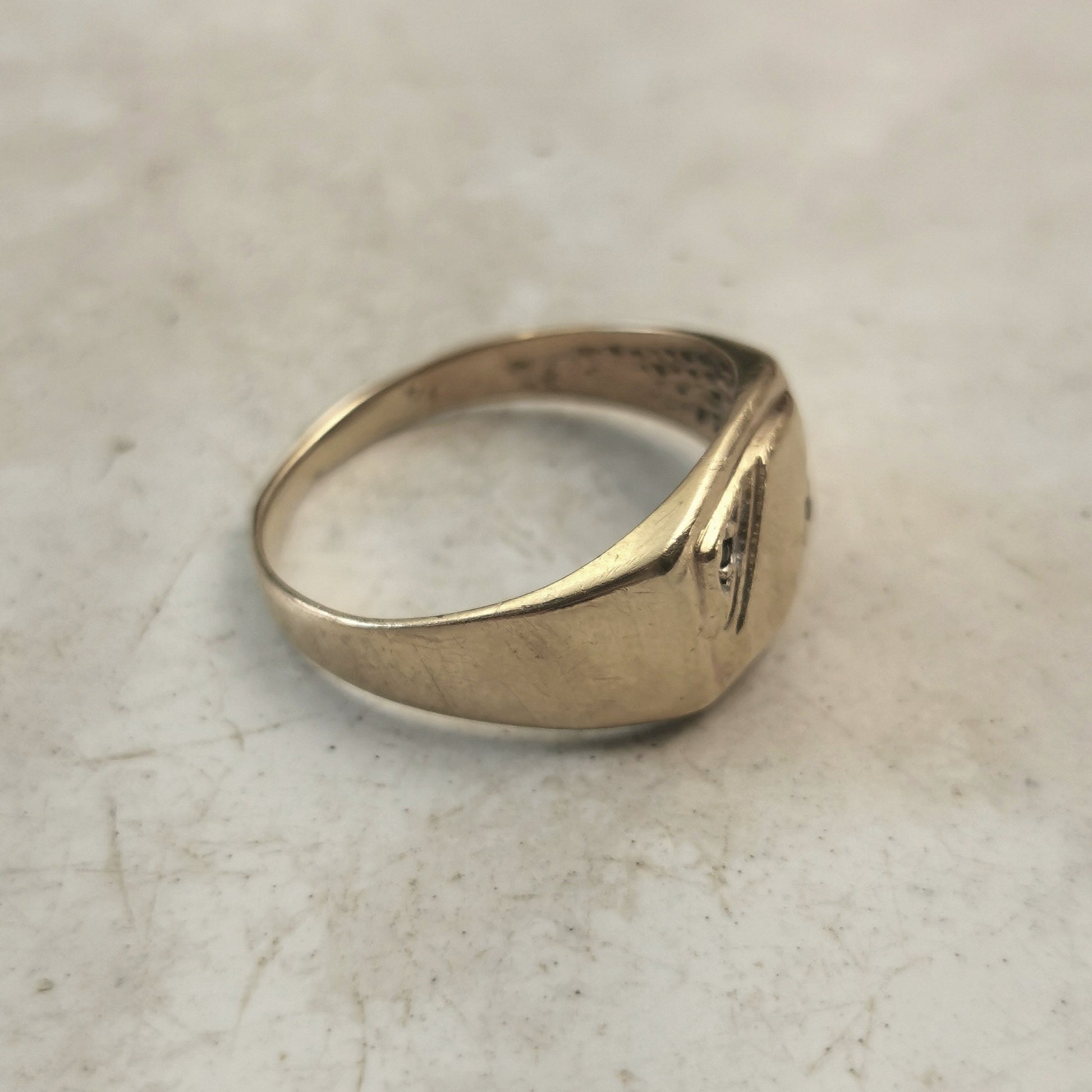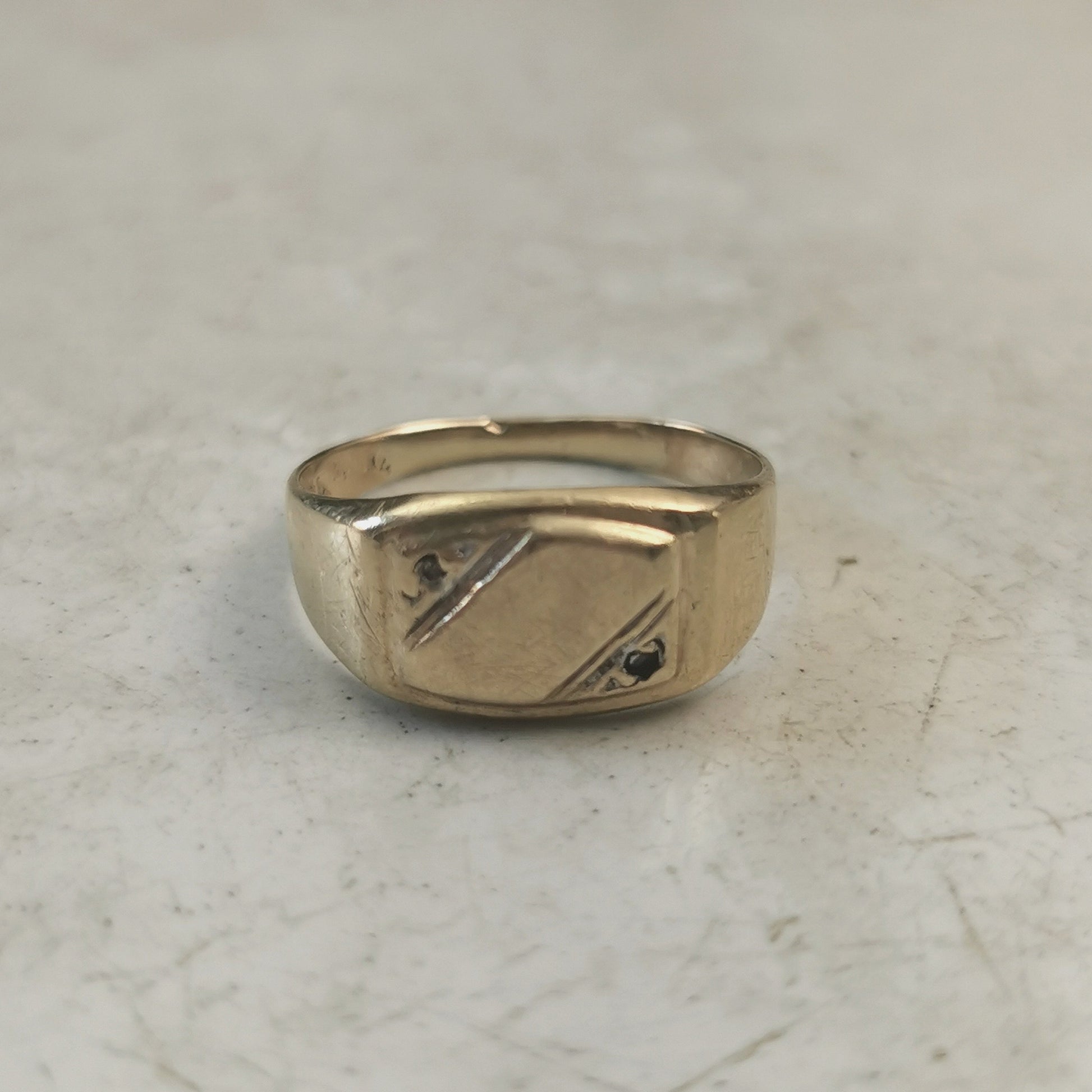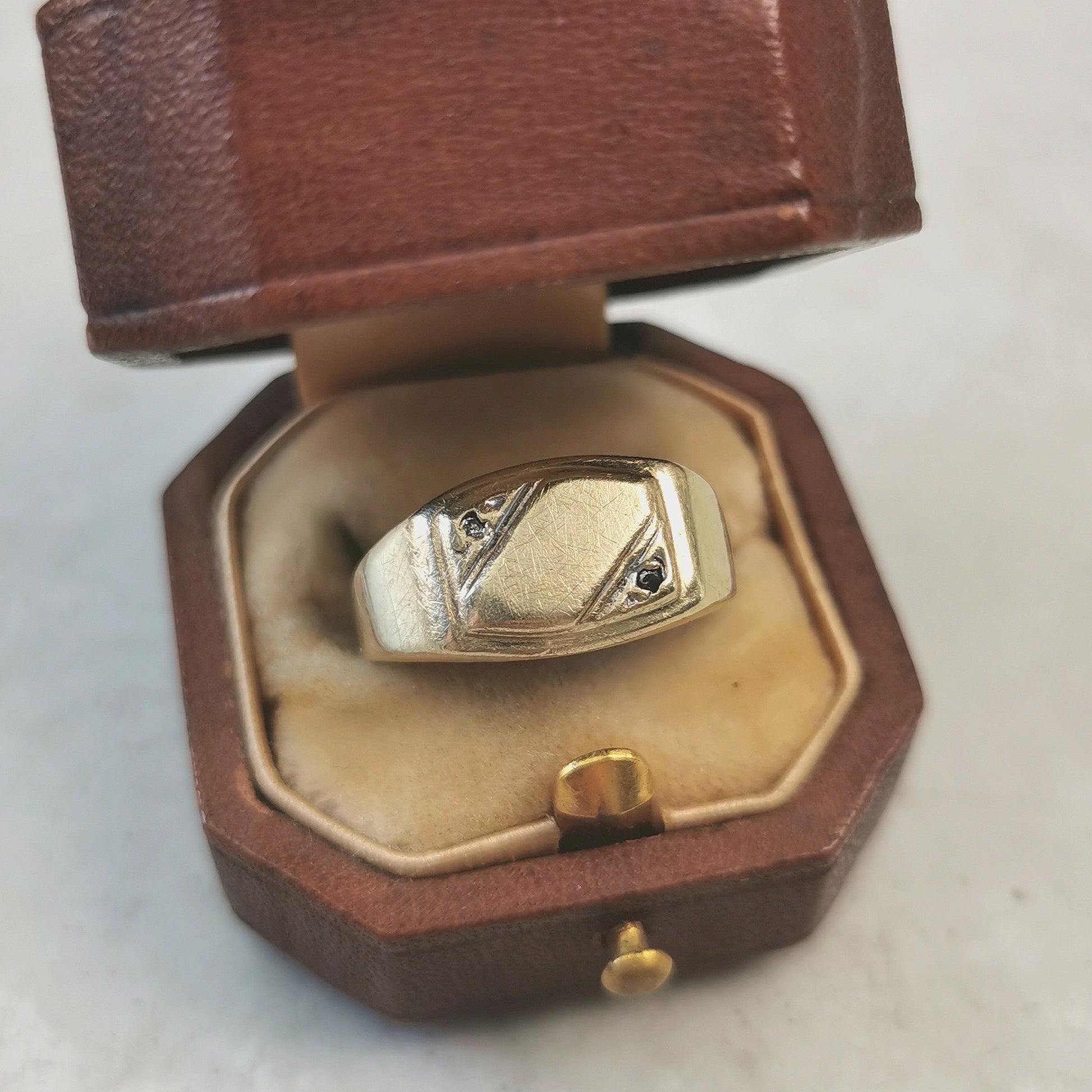 Vintage 10k Yellow Gold & Diamond Signet Ring