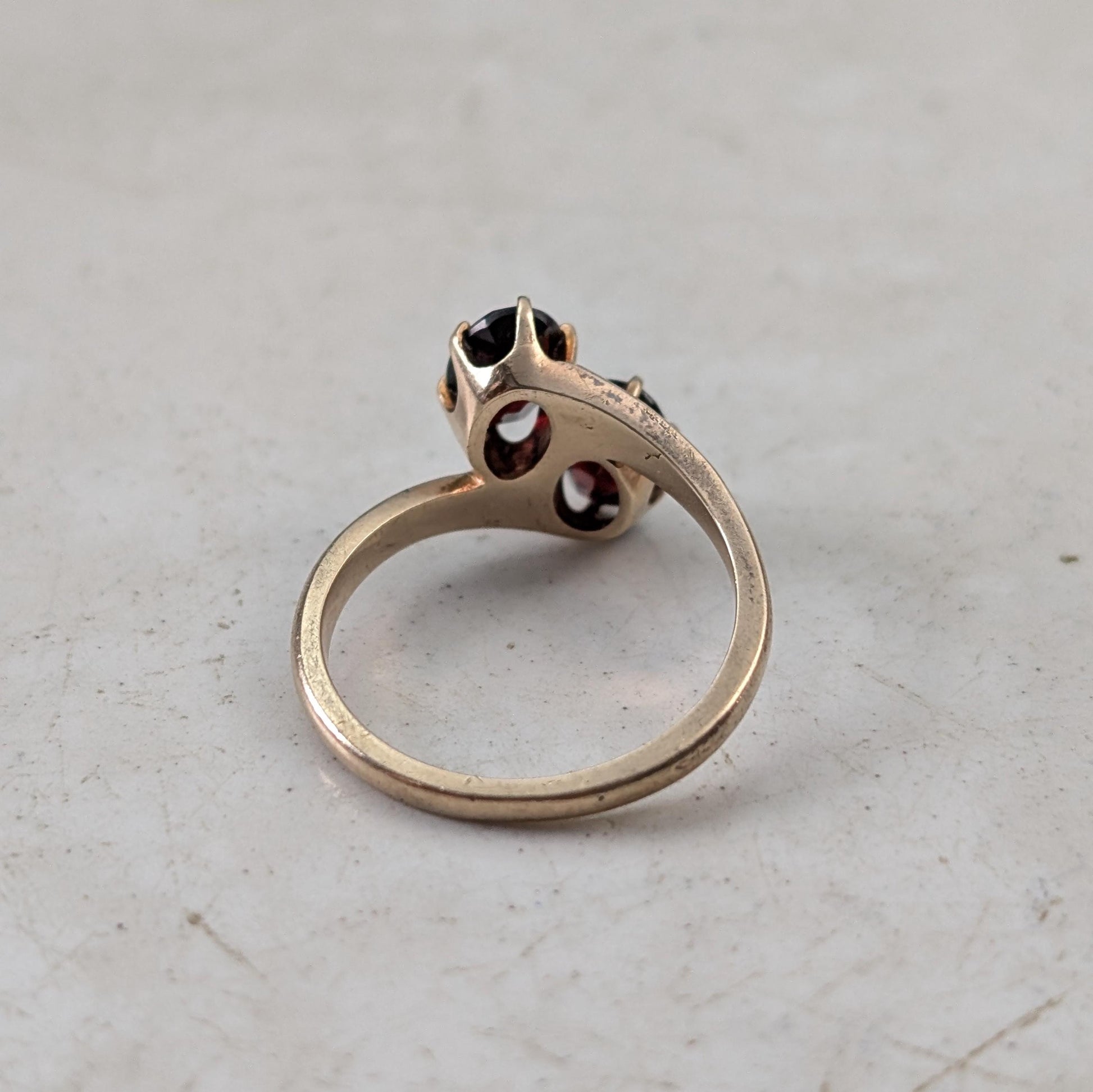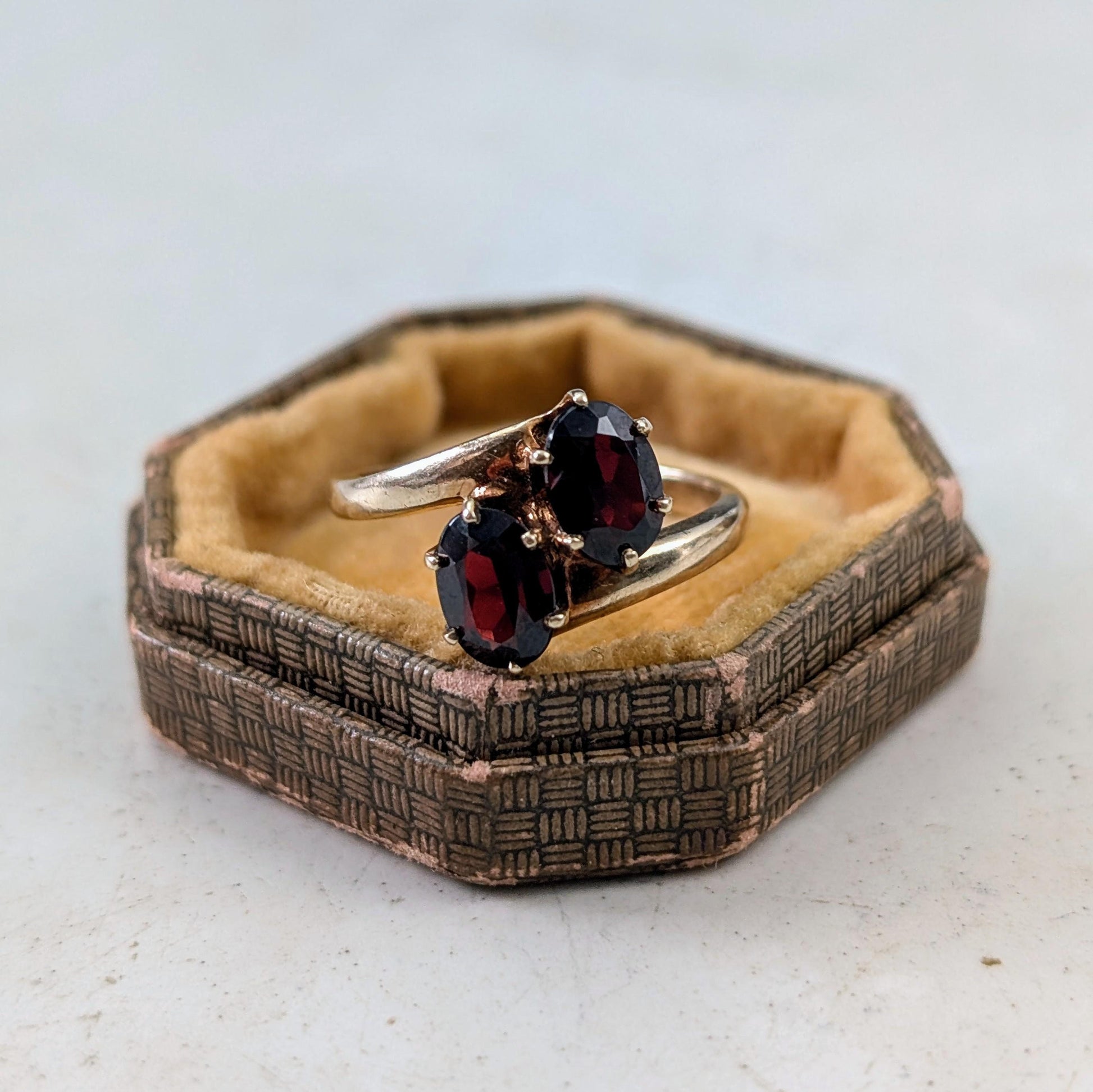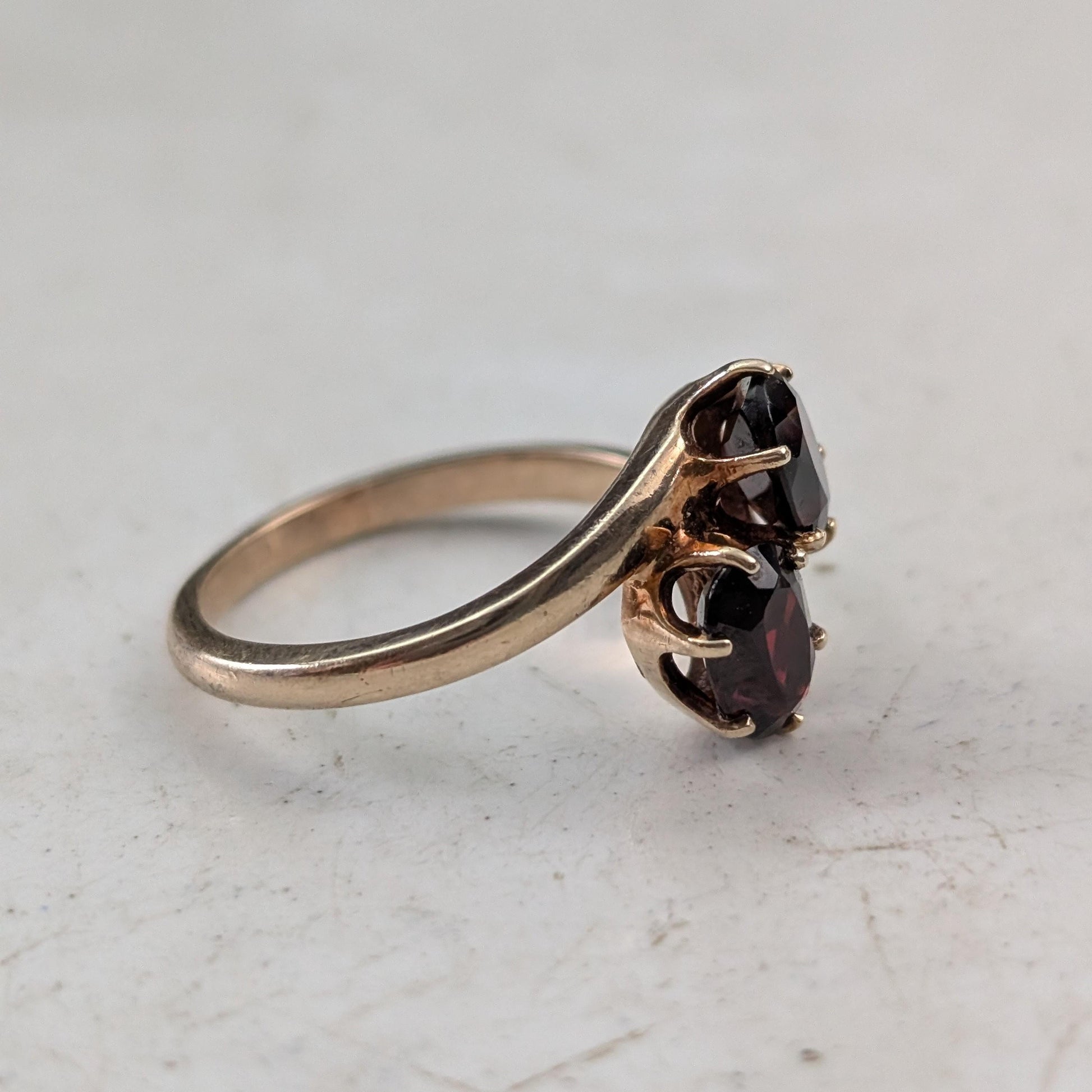 Art Deco 10k Yellow Gold Toi & Moi Garnet Ring