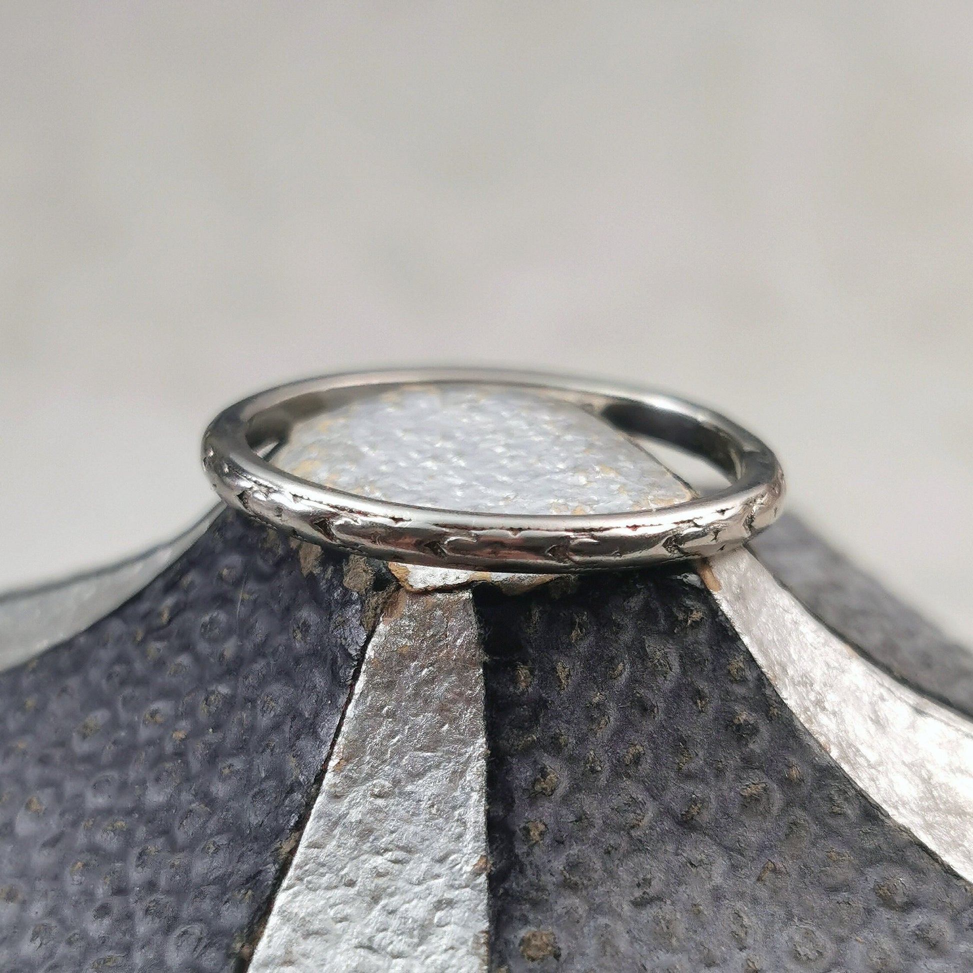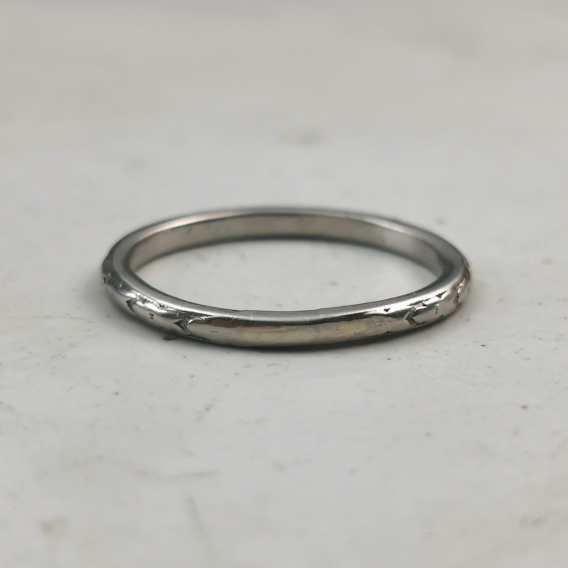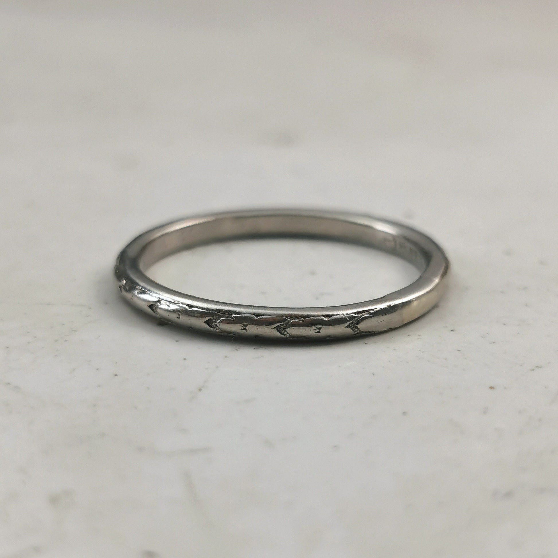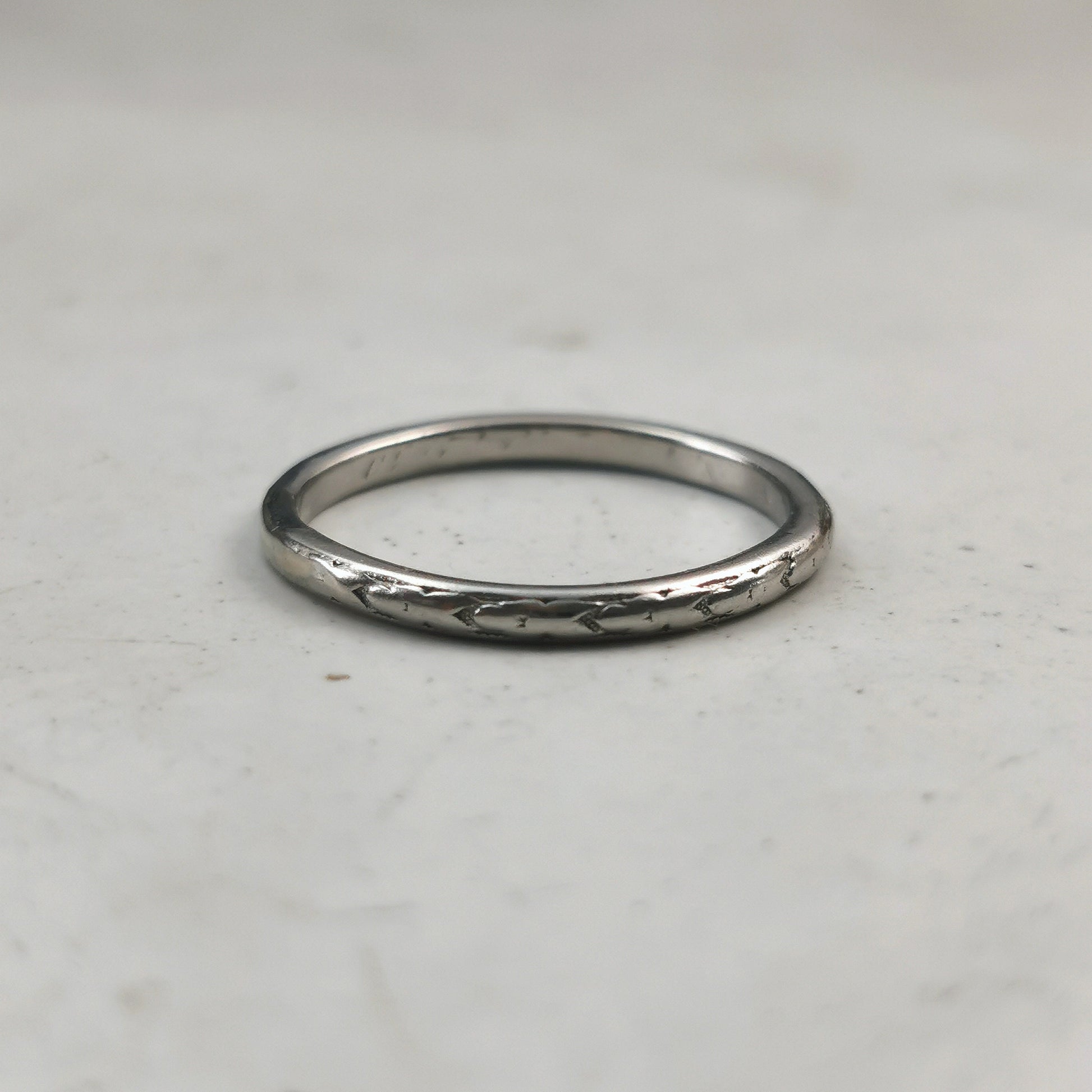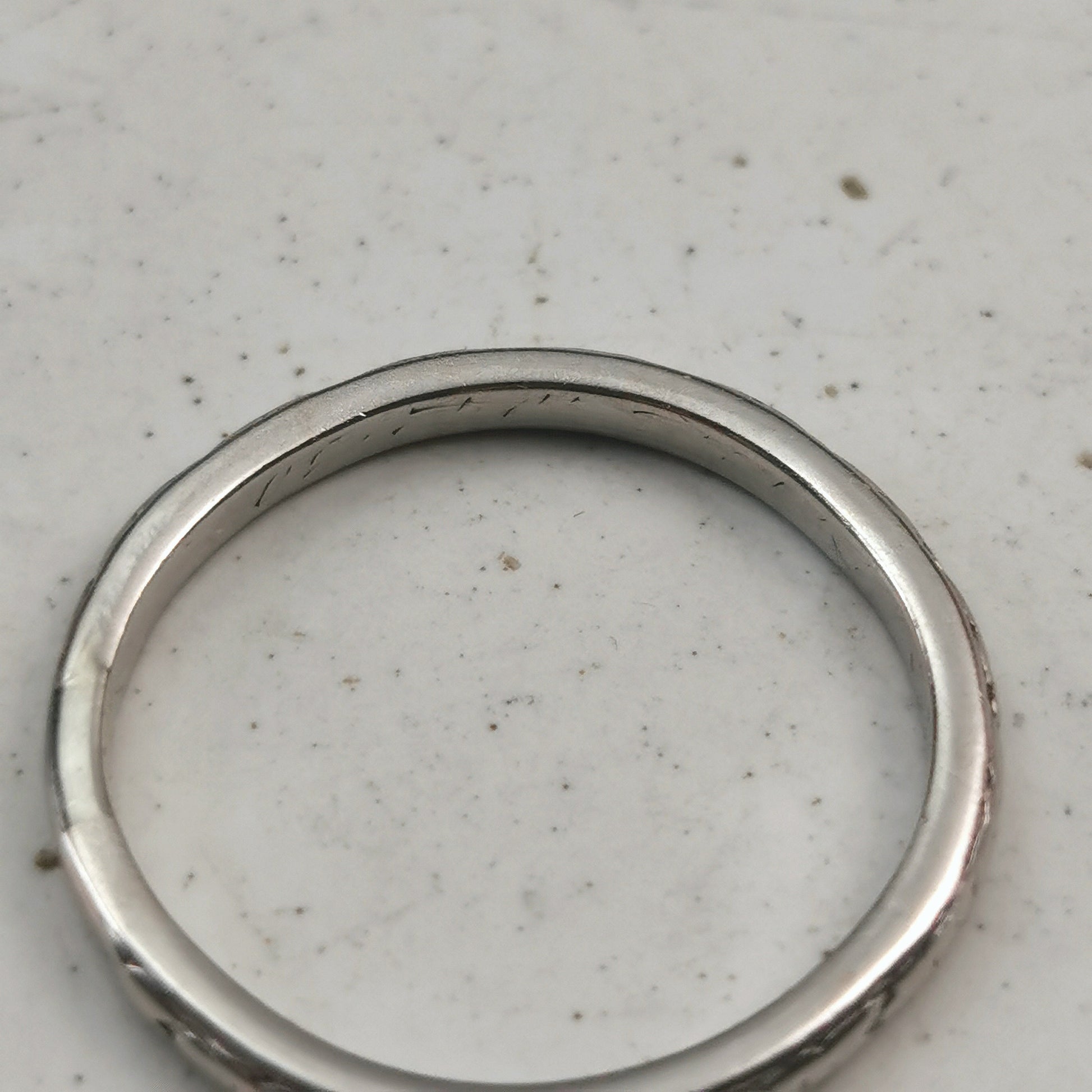 - sadly hand engraved dates and initials have been polished out of interior of the the band, but faint remains are visible