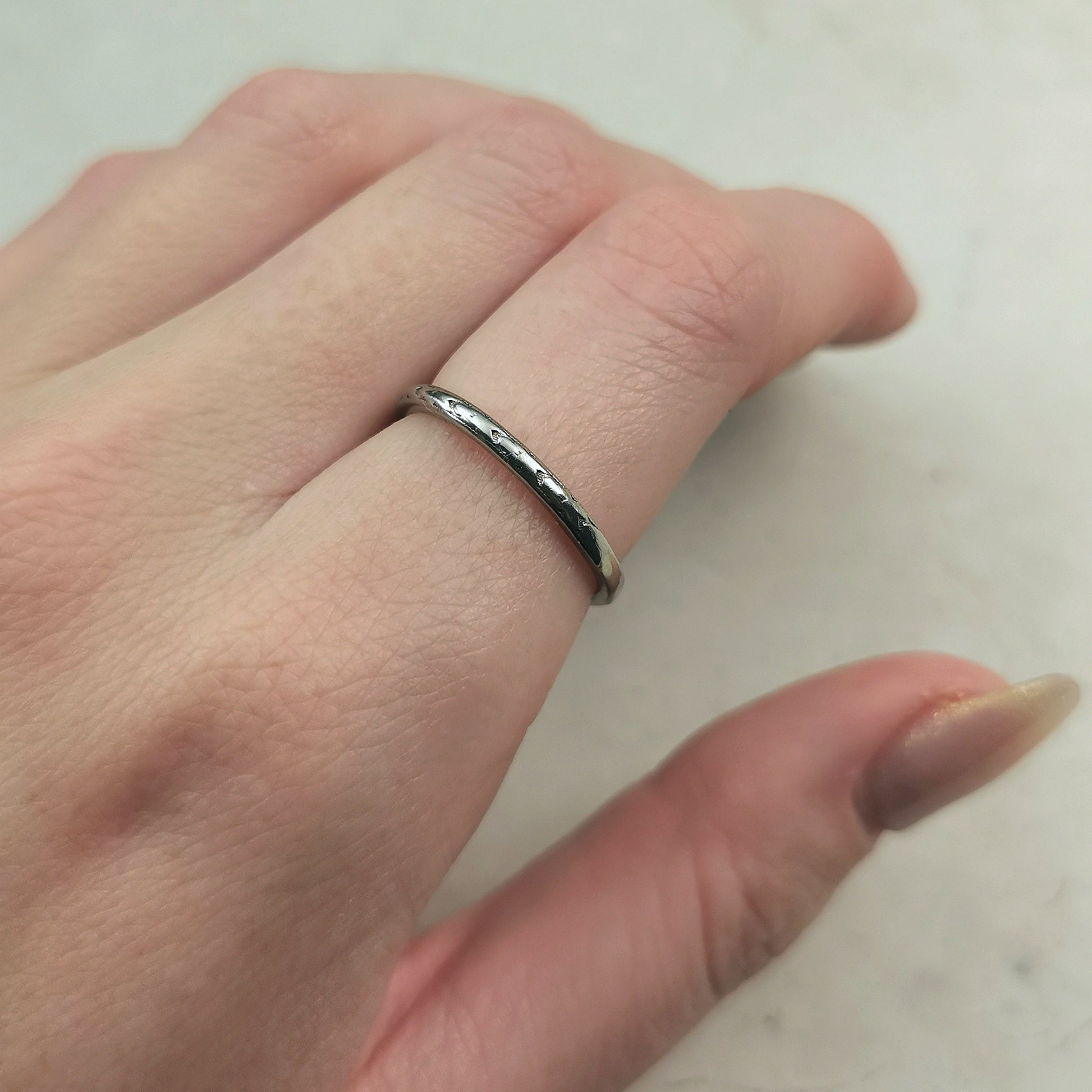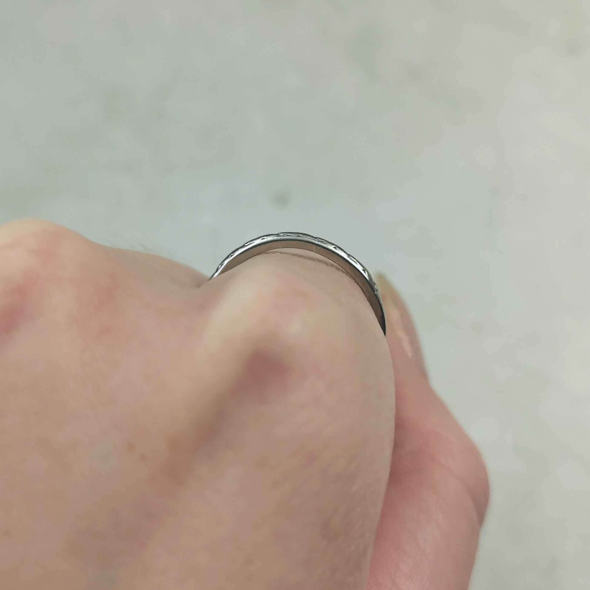 - band is 1.9mm wide and rises 1.8mm off finger