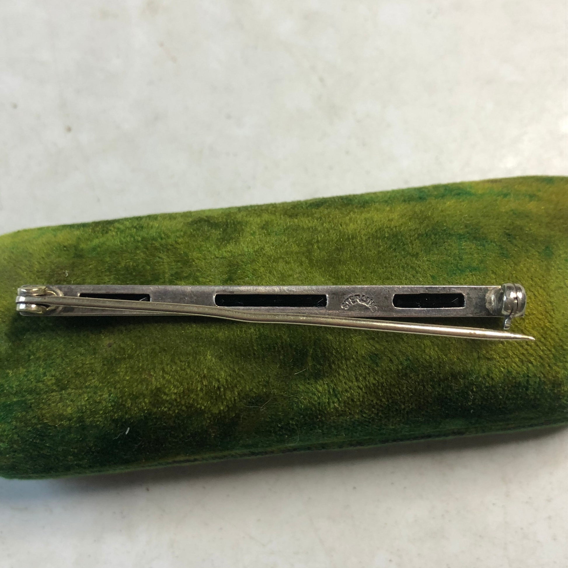 Art Deco Sterling Silver and Carré Cut Paste Stones Bar Brooch