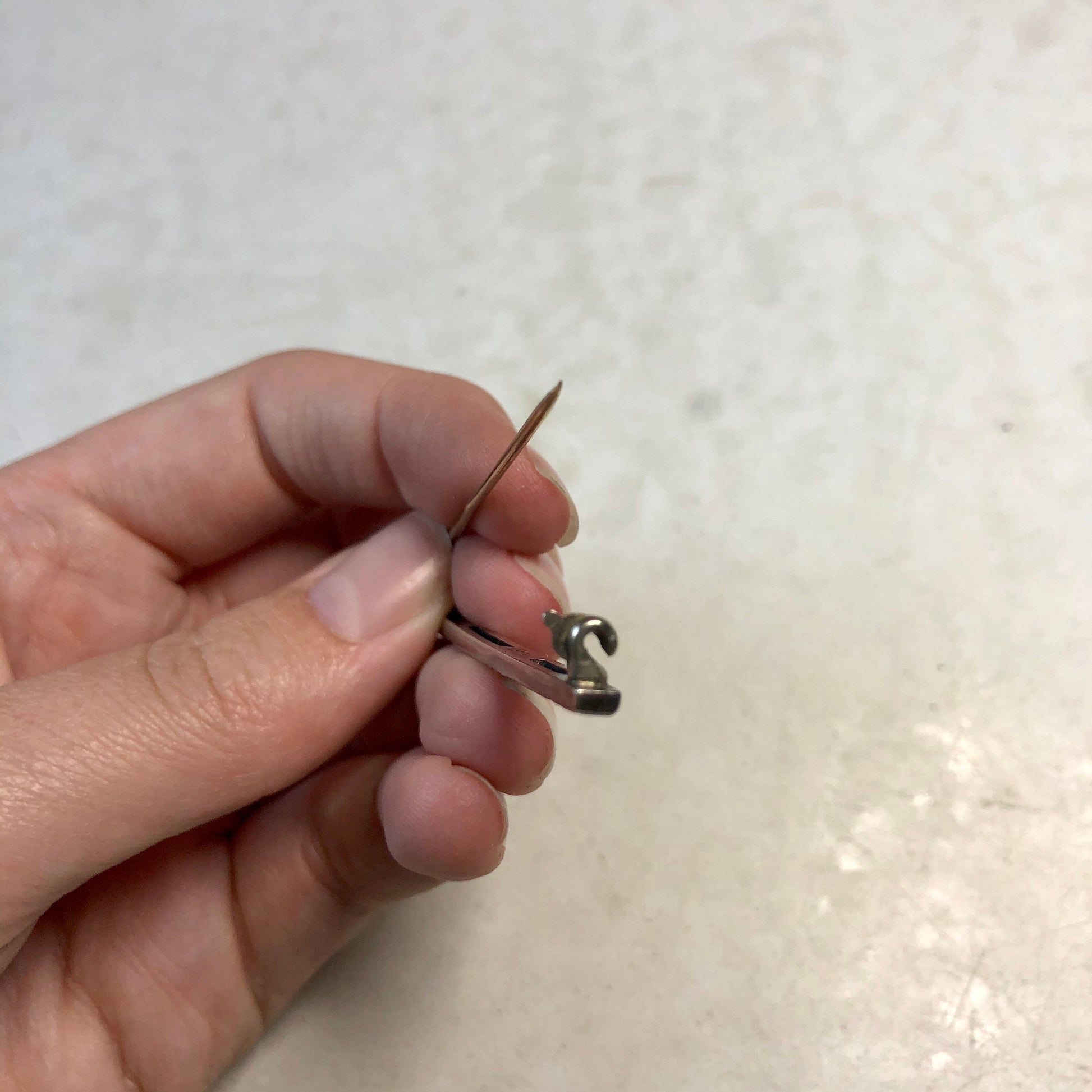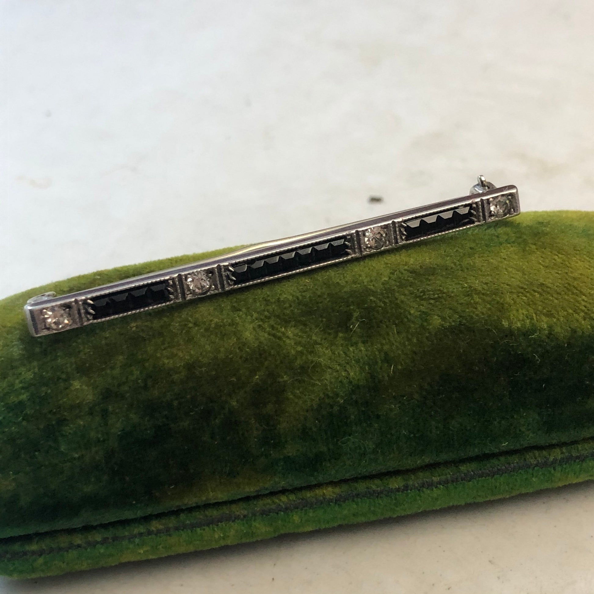 - front is set with 15 black glass old square cut (carré) gems and 4 clear rhinestones