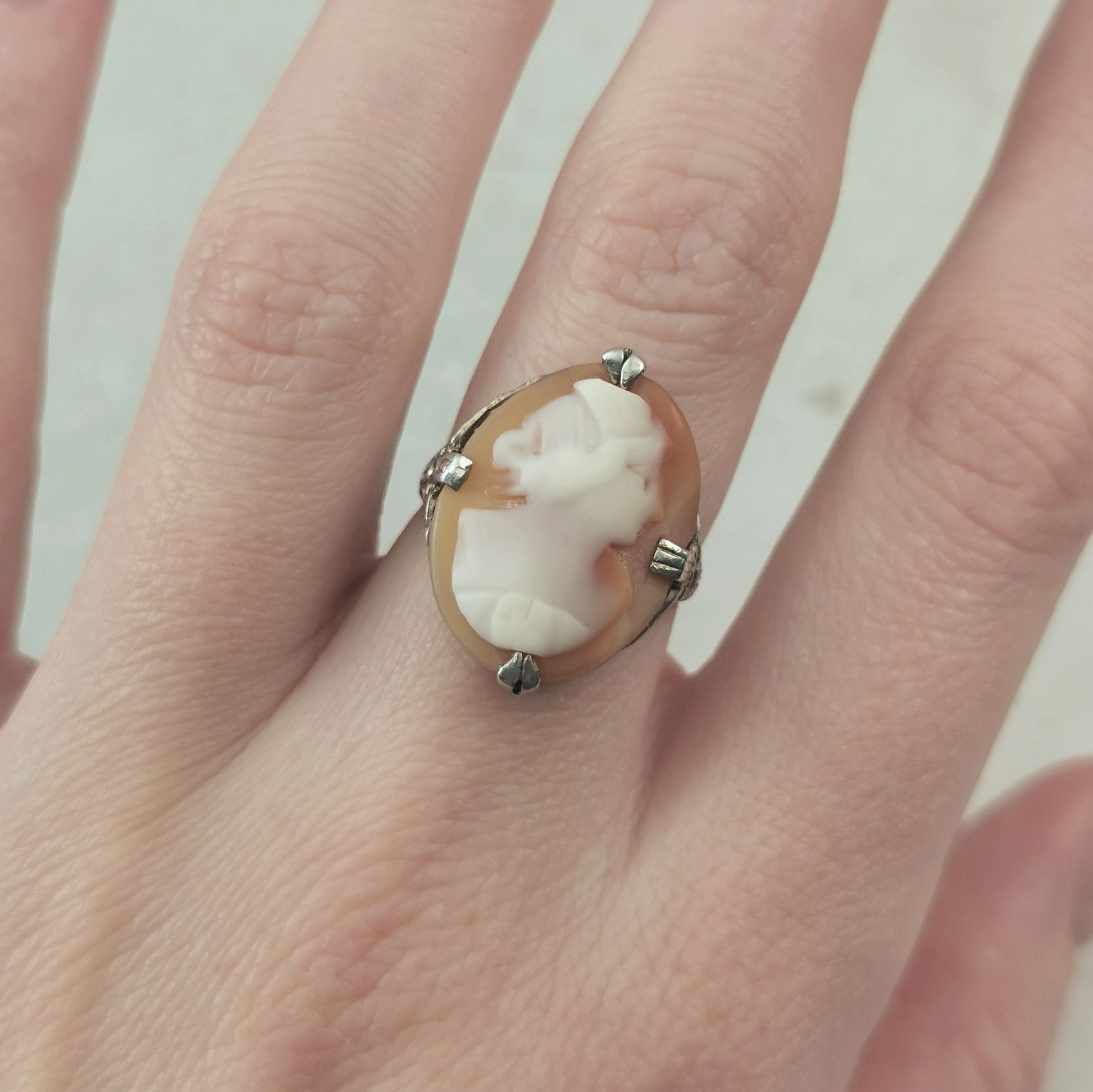 Art Deco Sterling Silver and Carved Cameo Ring