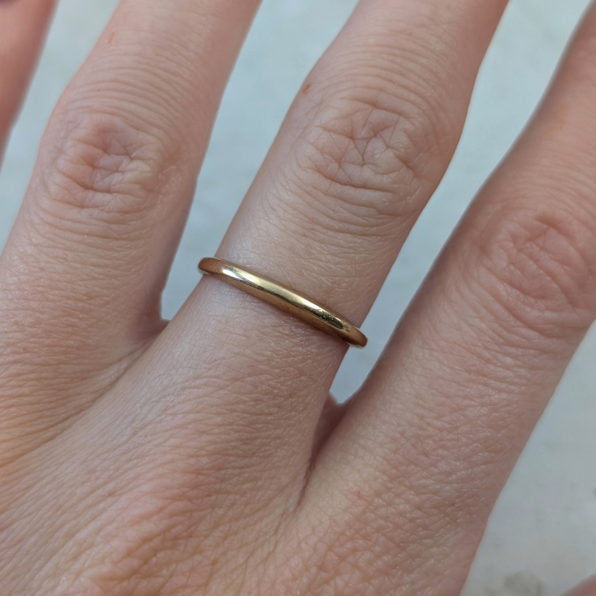 - this unique vintage 2.4mm band features a very slim tapered dome that rises 2mm off finger and fits nicely under raised settings