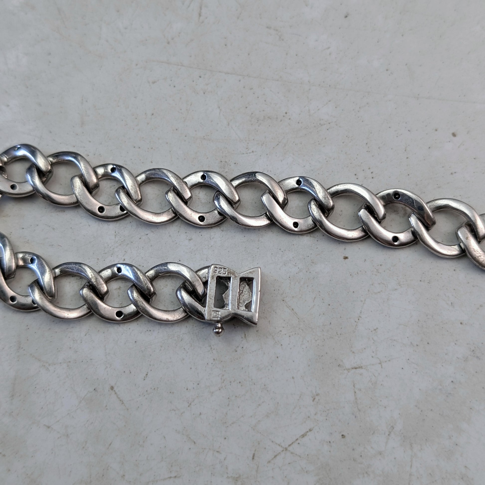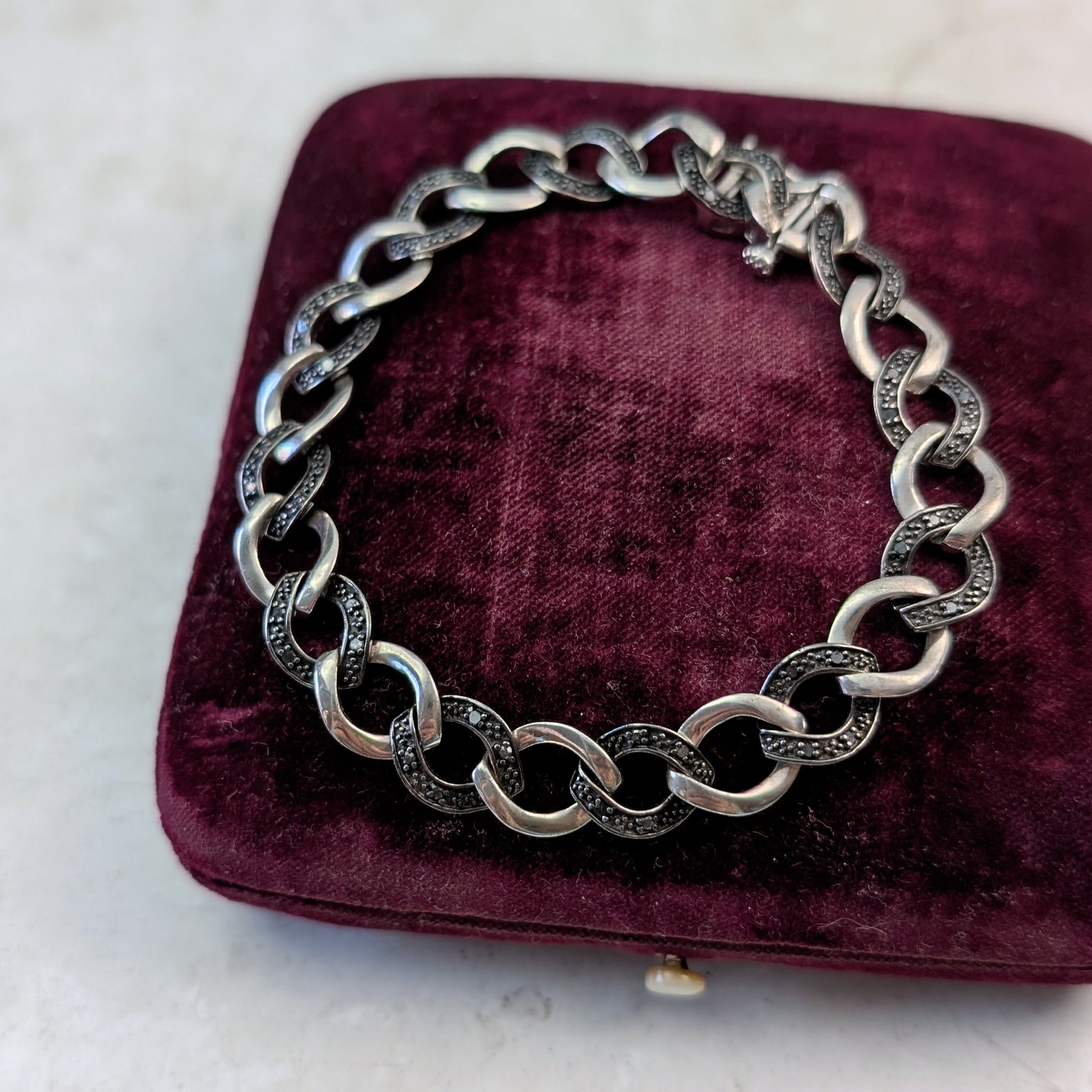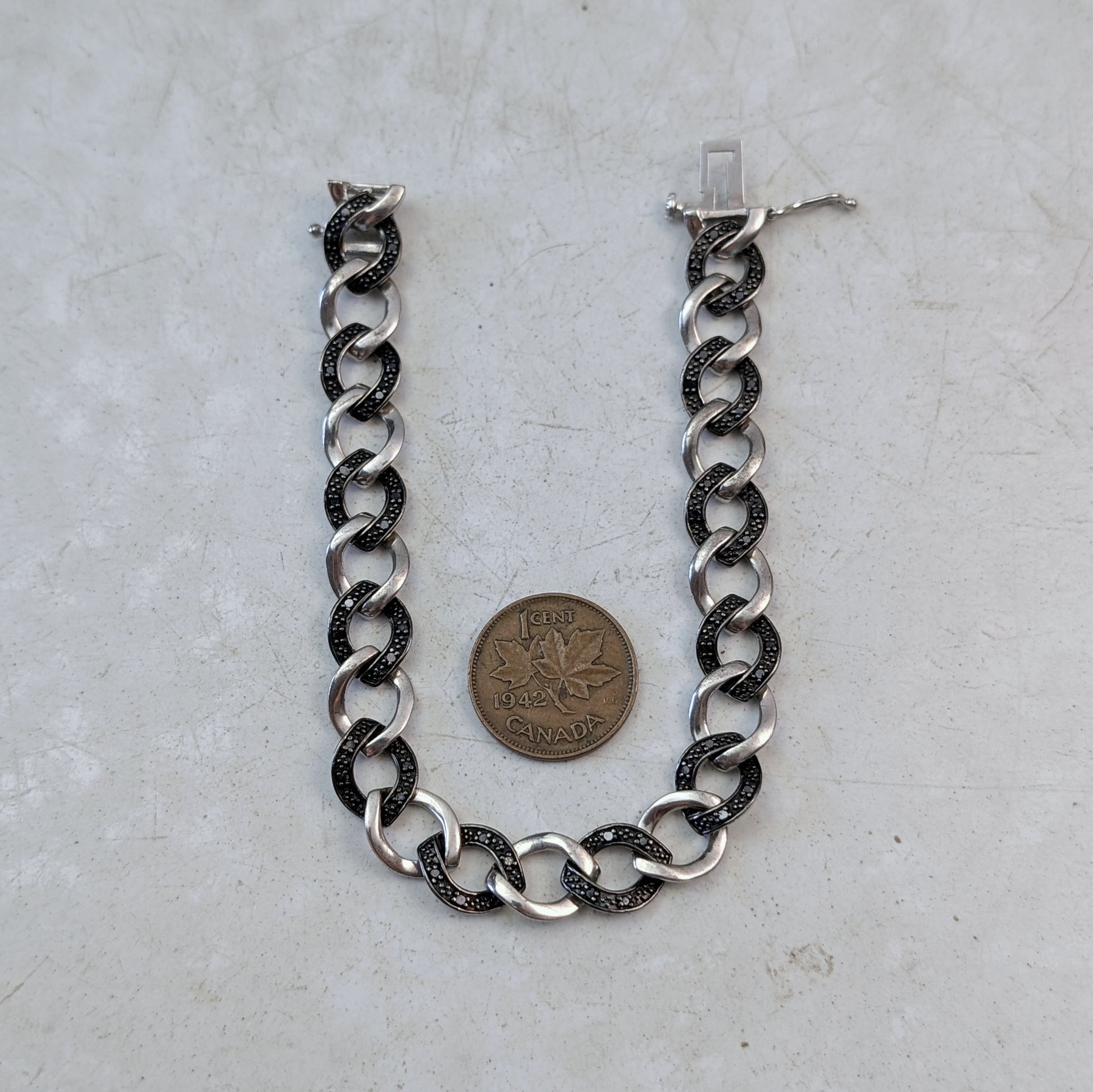 Estate Sterling Silver and Black Diamond Curb Link Bracelet