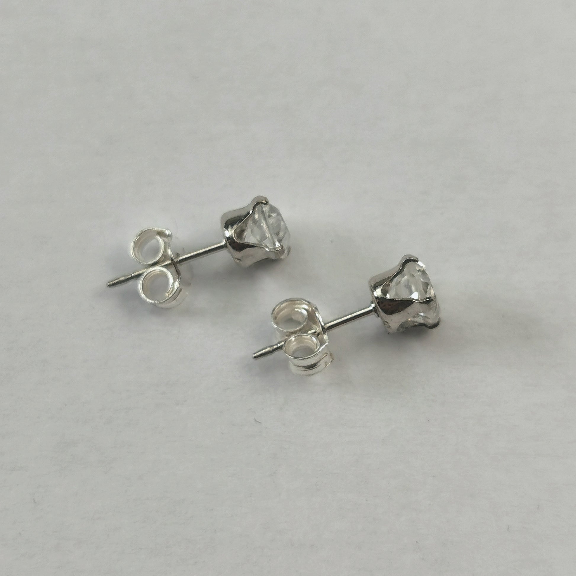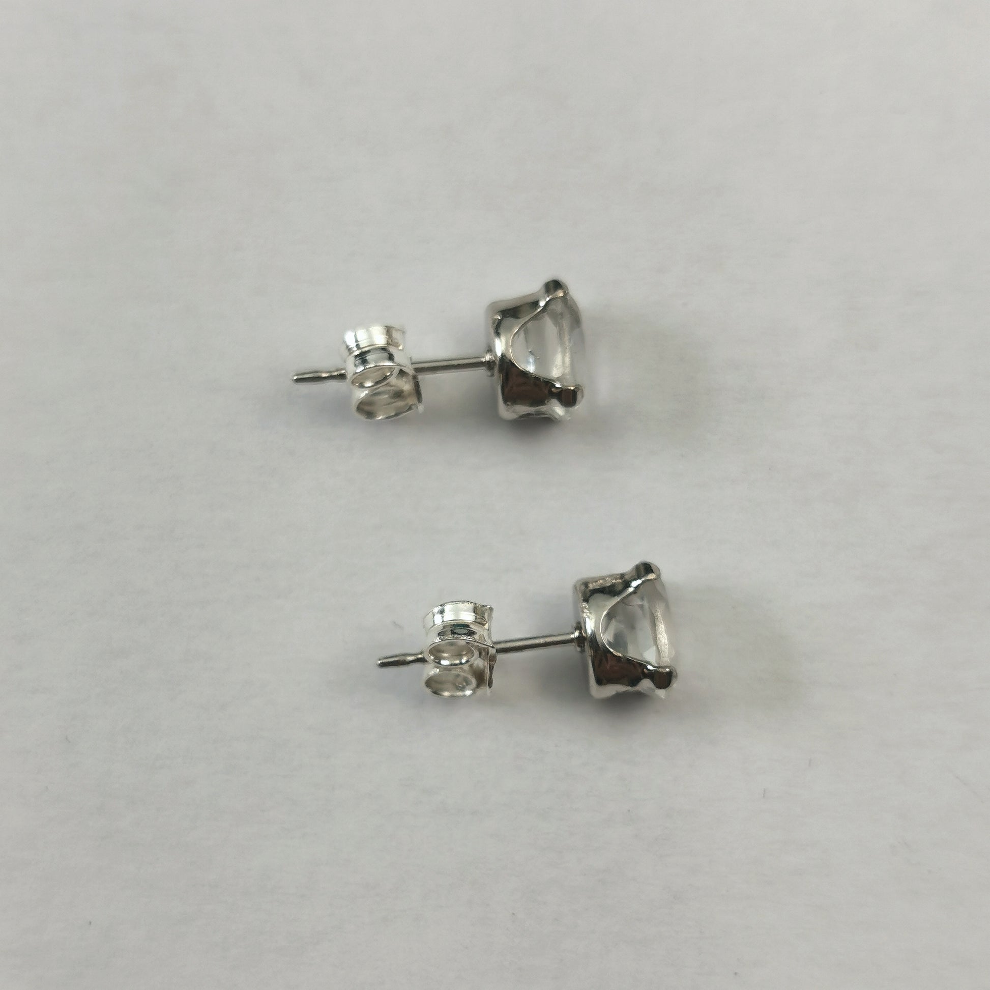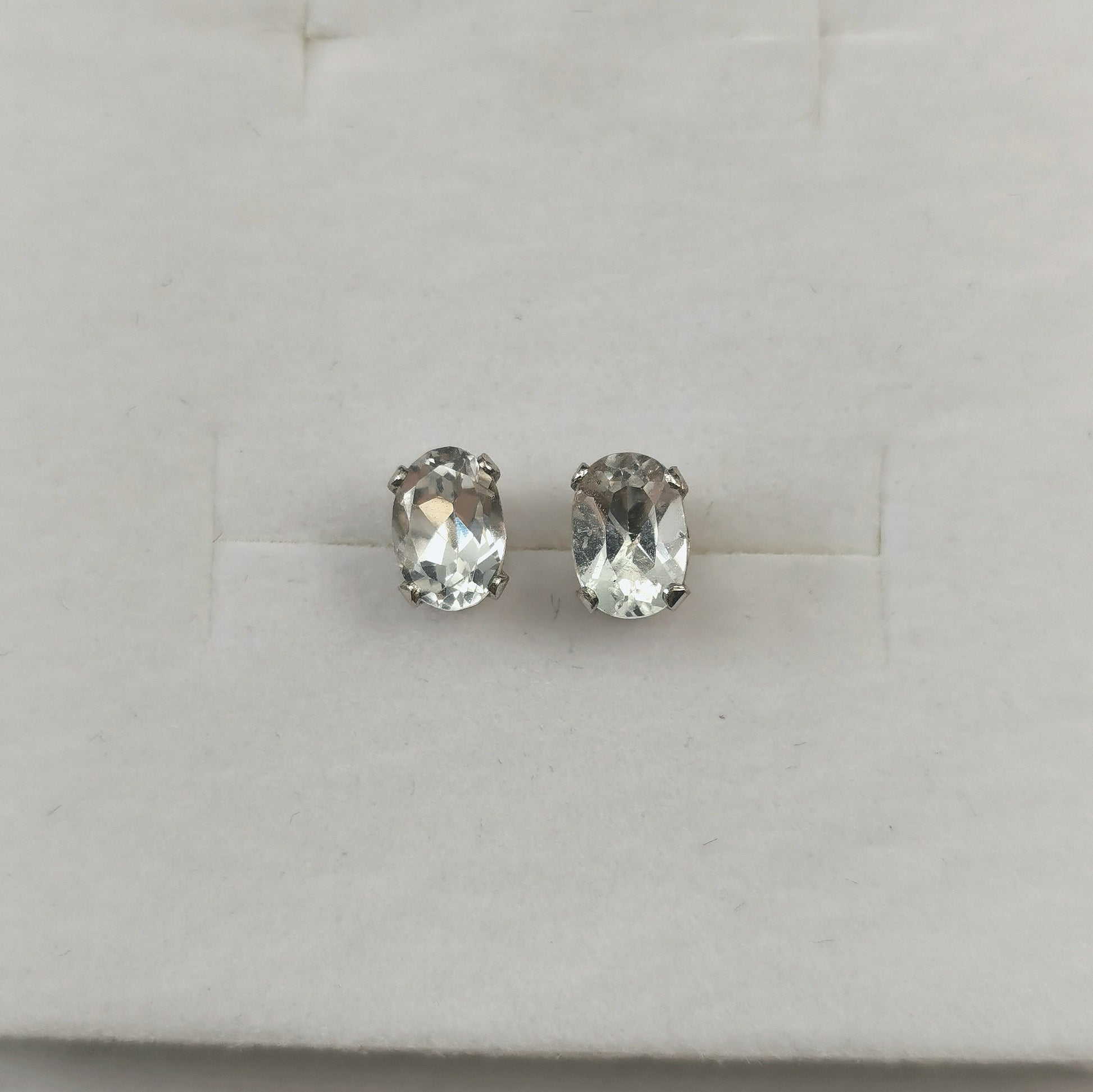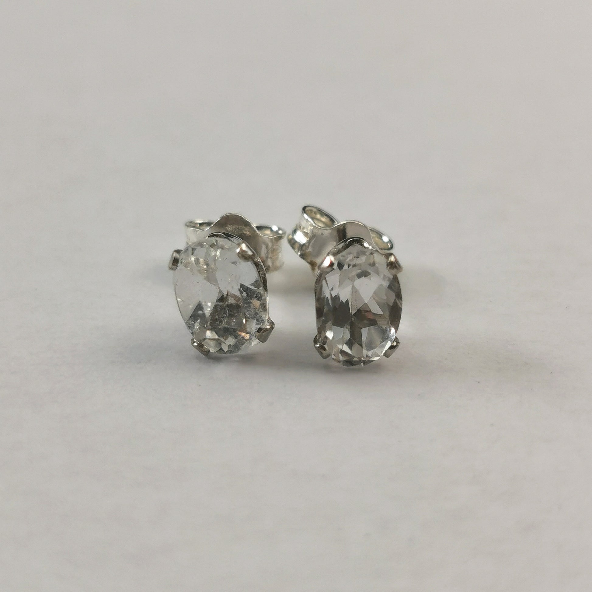 Earrings each feature a 6mm x 4mm claw set colourless topaz. Marked 925 on posts and butterfly backs.