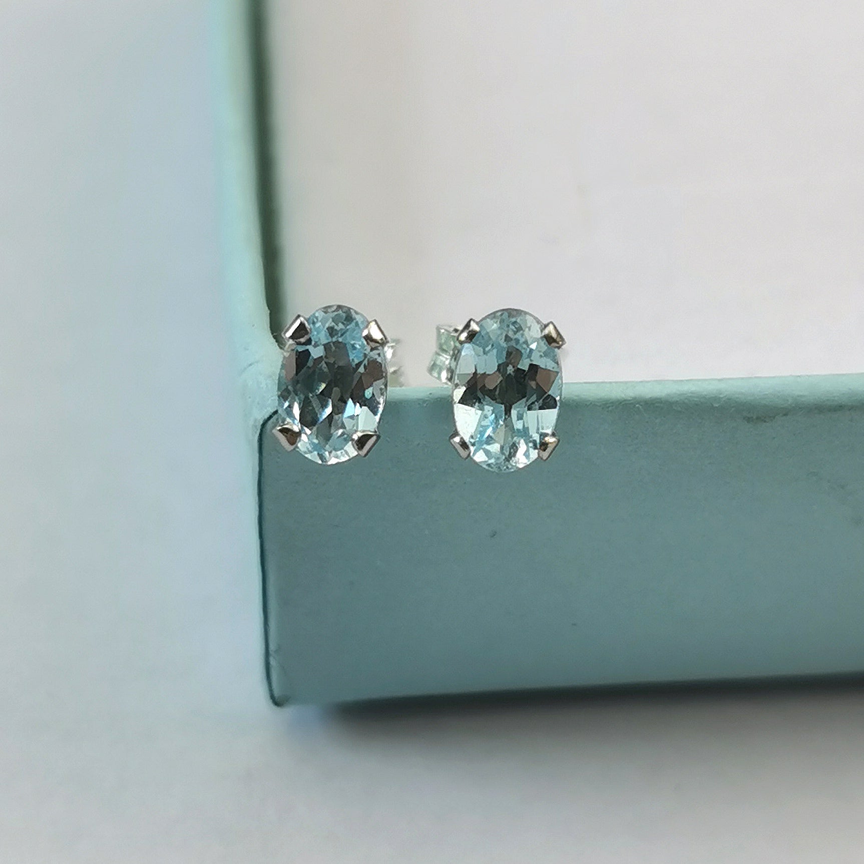 Earrings each feature a 6mm x 4mm claw set blue topaz. Marked 925 on posts and butterfly backs.