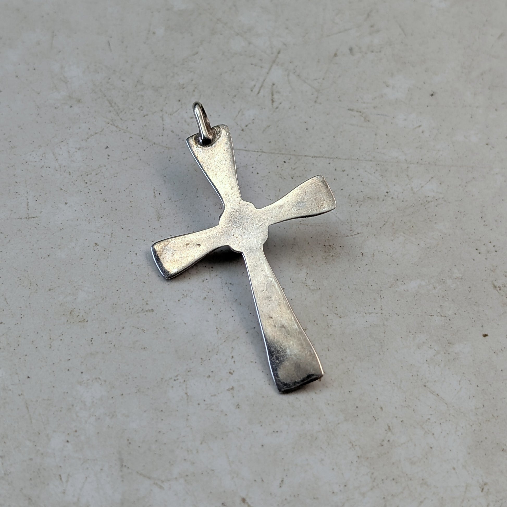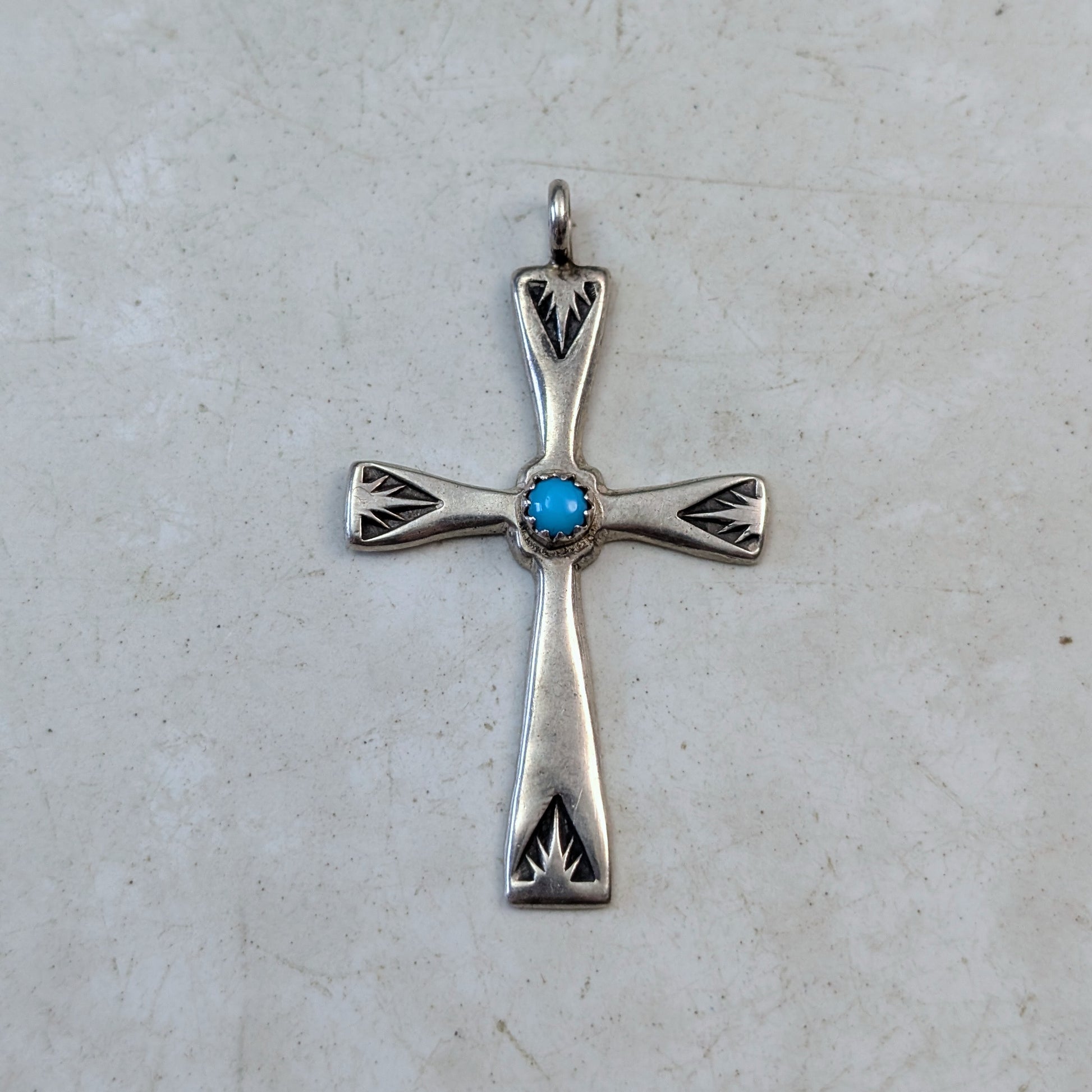 - pendant features a 3.7mm round turquoise cabochon crimp set at centre of the cross