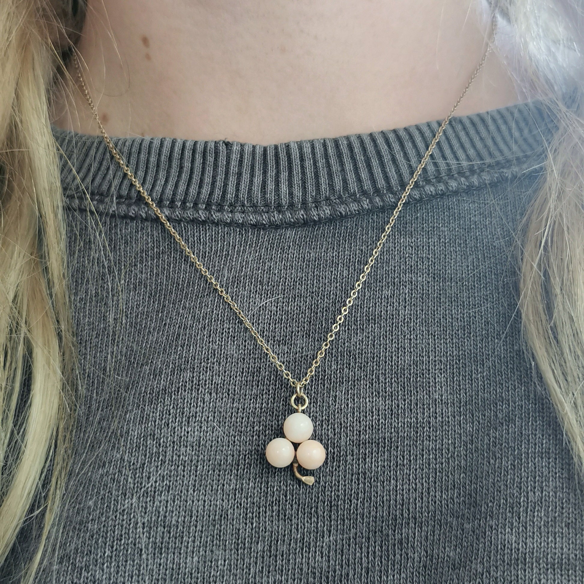 Early Krementz 12k Gold Filled Genuine Coral Trefoil Pendant Necklace