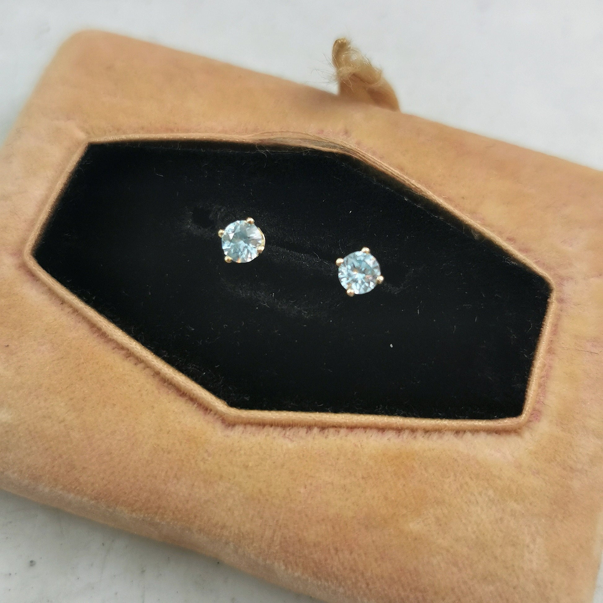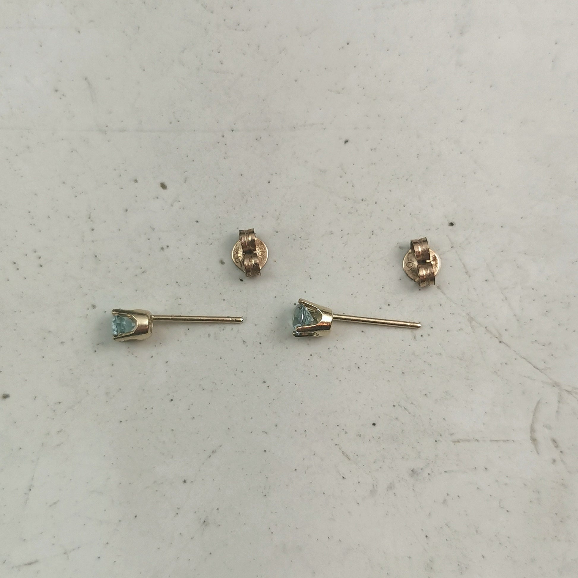 Estate 10k Yellow Gold Light Blue Zircon Stud Earrings - December Birthstone