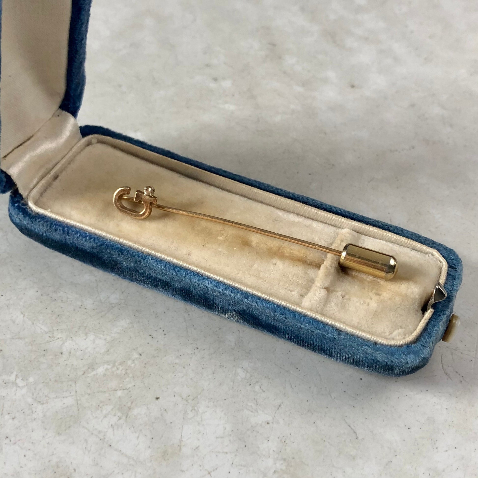 Estate Initial G Stick Pin - 10k Yellow Gold Diamond Pin