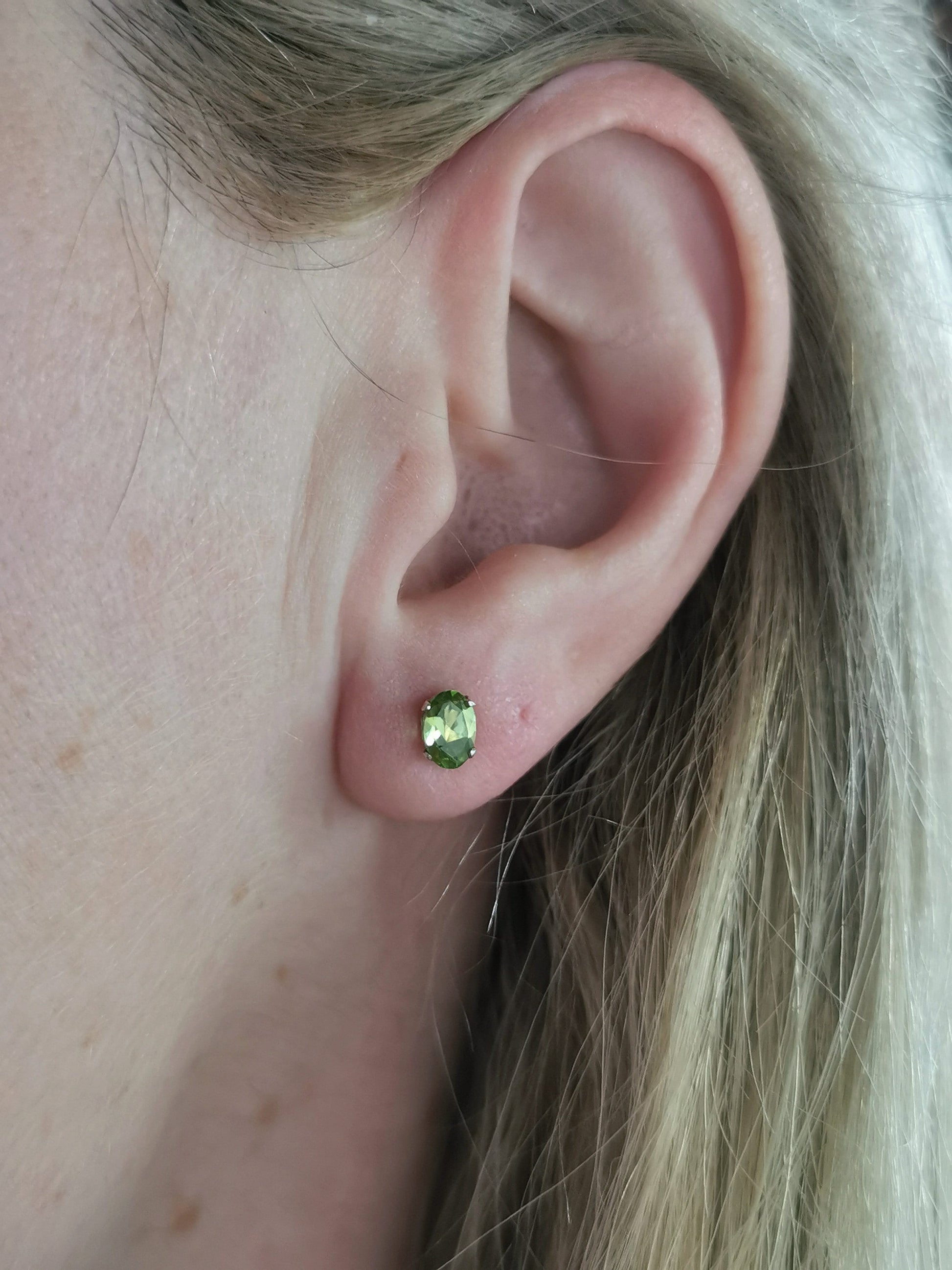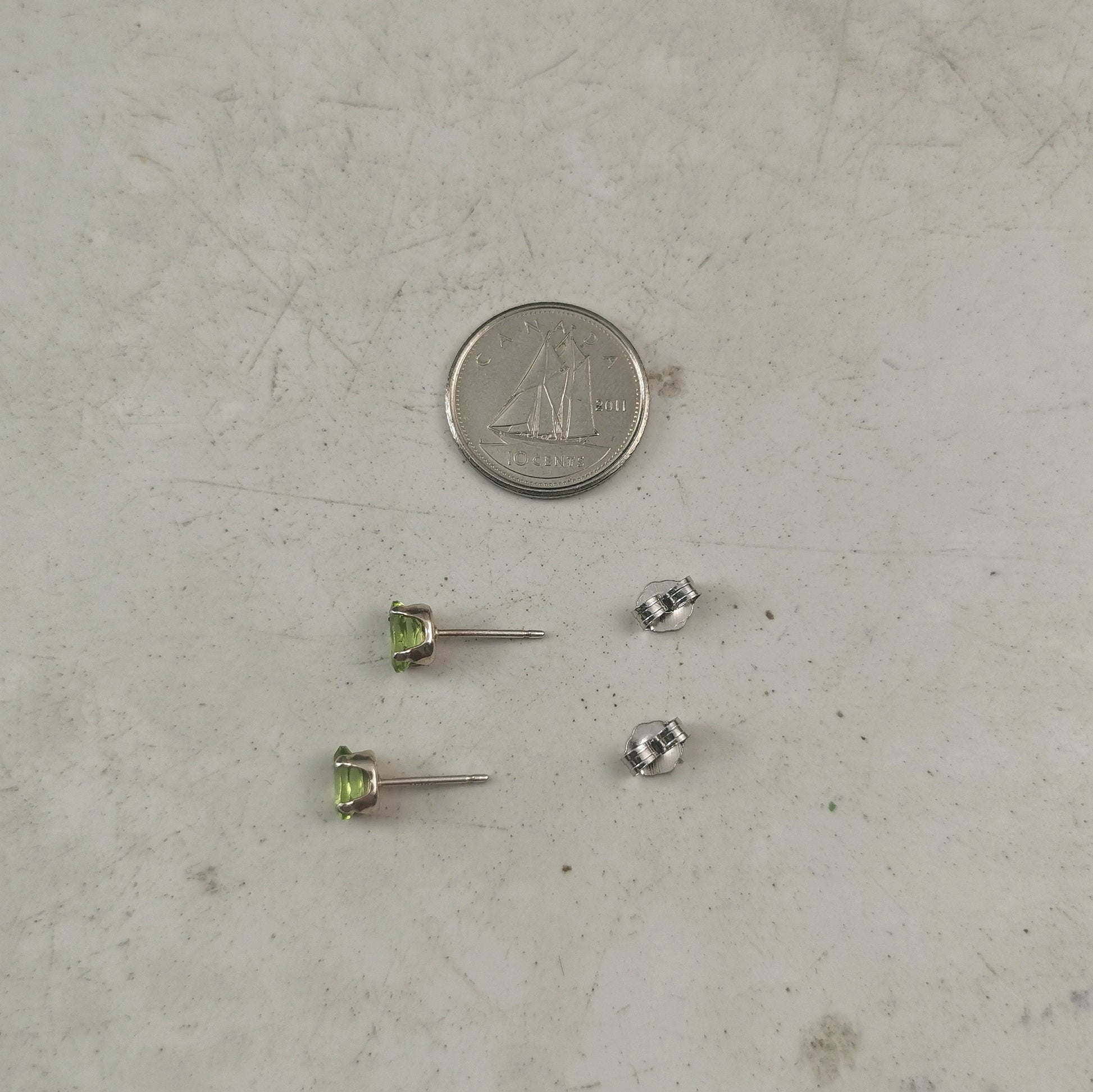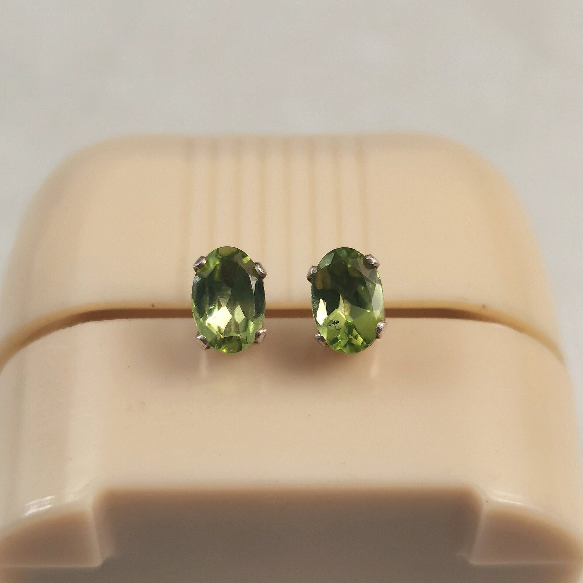 Estate Sterling Silver and Genuine Peridot Stud Earrings - Oval Peridot August Birthstone Earrings