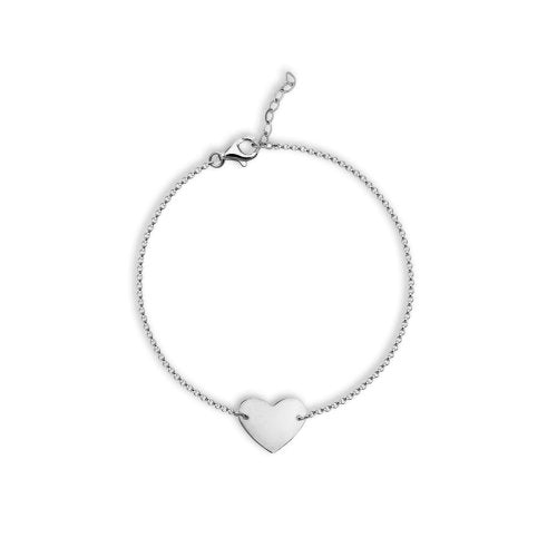 New Bracelet constructed out of stering silver with rhodium platings. Heart measures 9mm x 10mm & 0.4mm thick. Heart can be engraved by a jeweller.