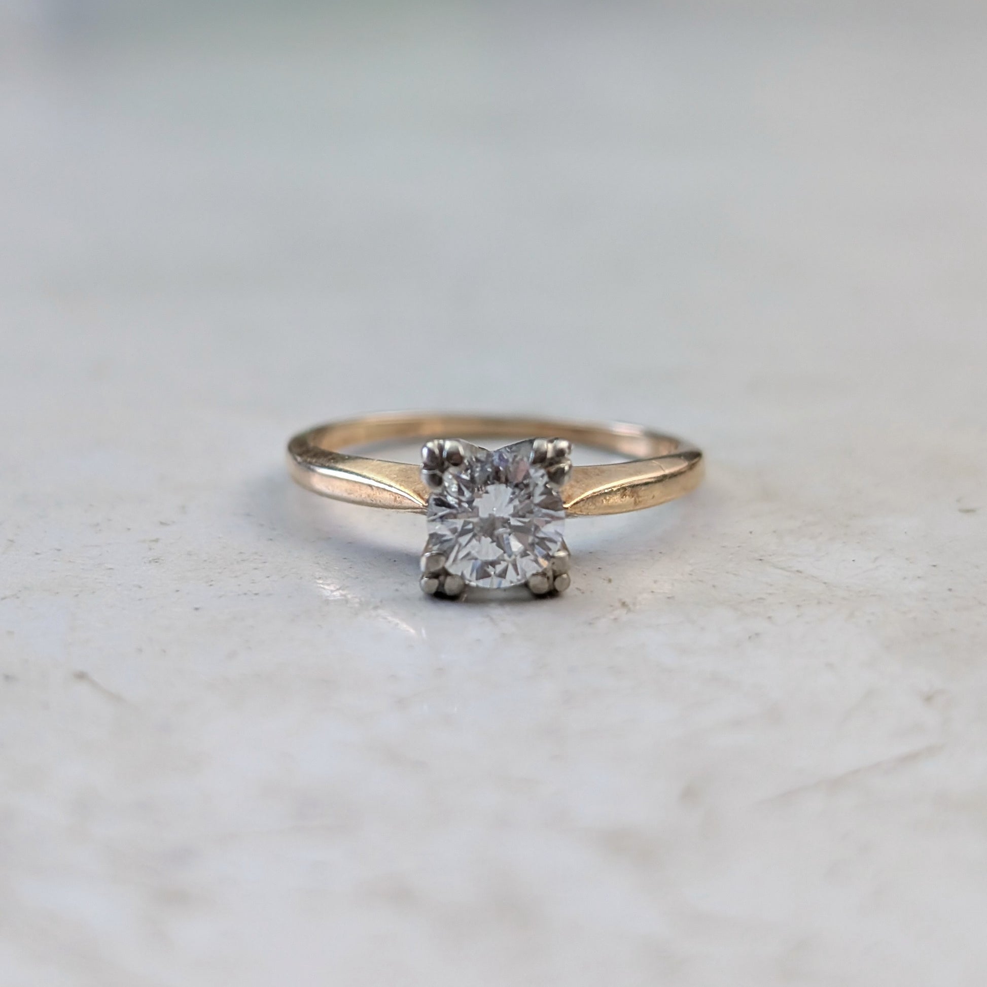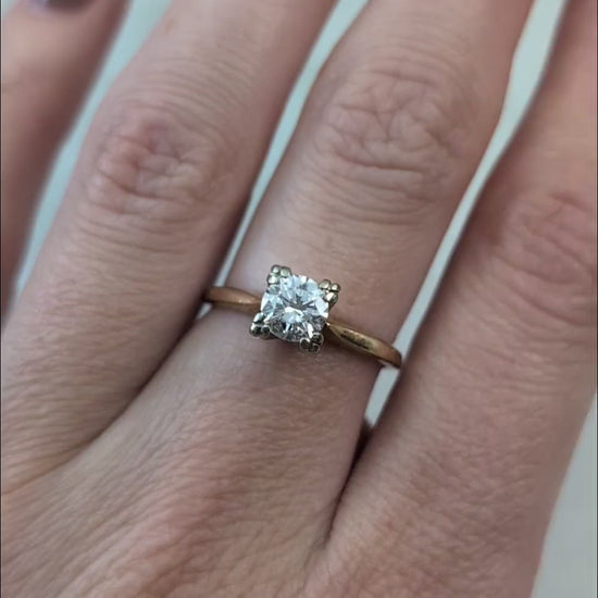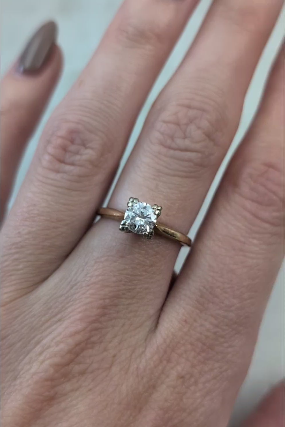 Vintage 14K Gold Two Tone 0.65ct Diamond Solitaire Engagement Ring
