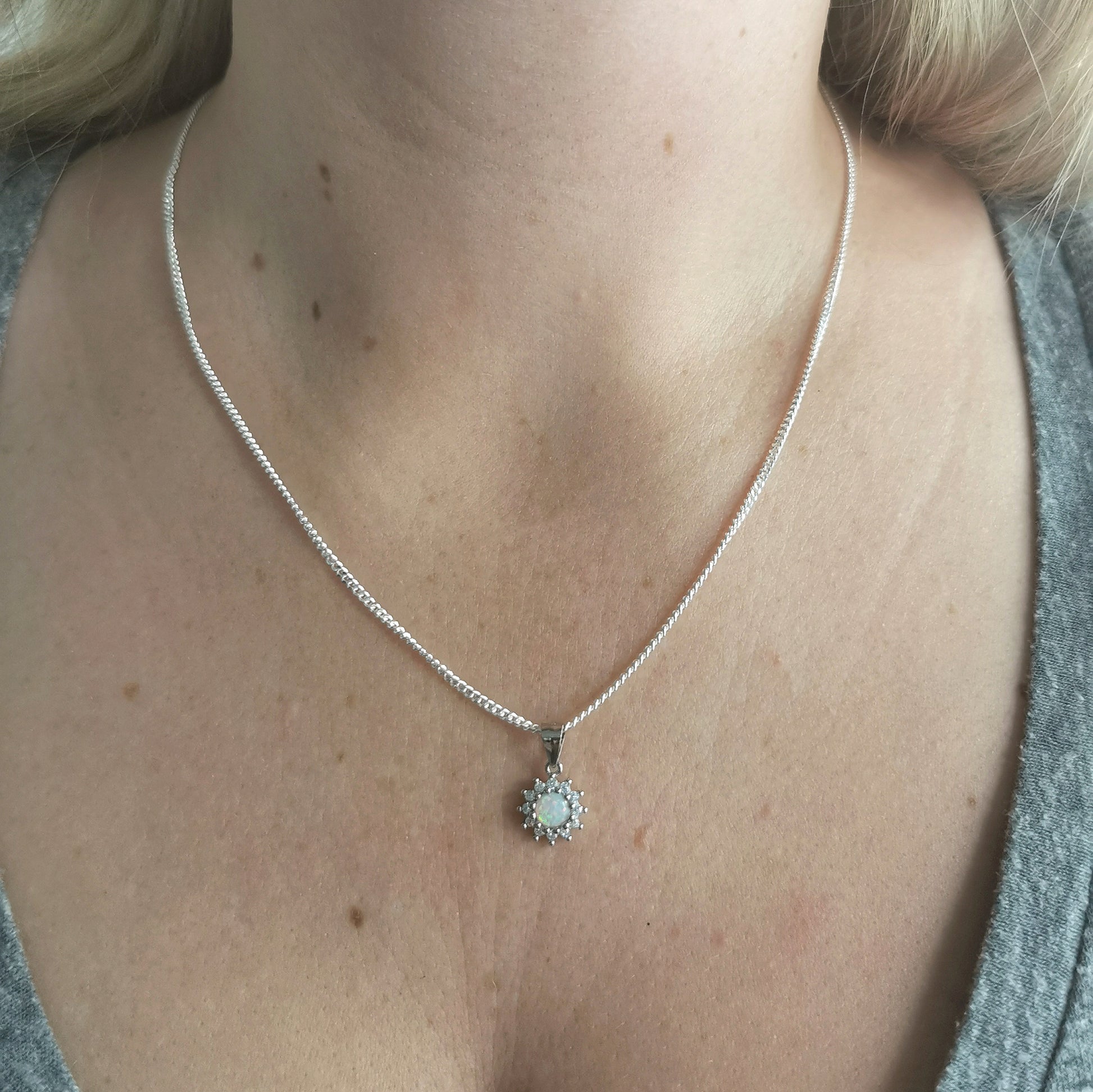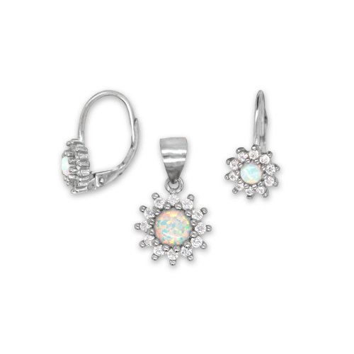 New Sterling Silver Created Opal and CZ Set - Lever Back Earrings and Pendant Necklace